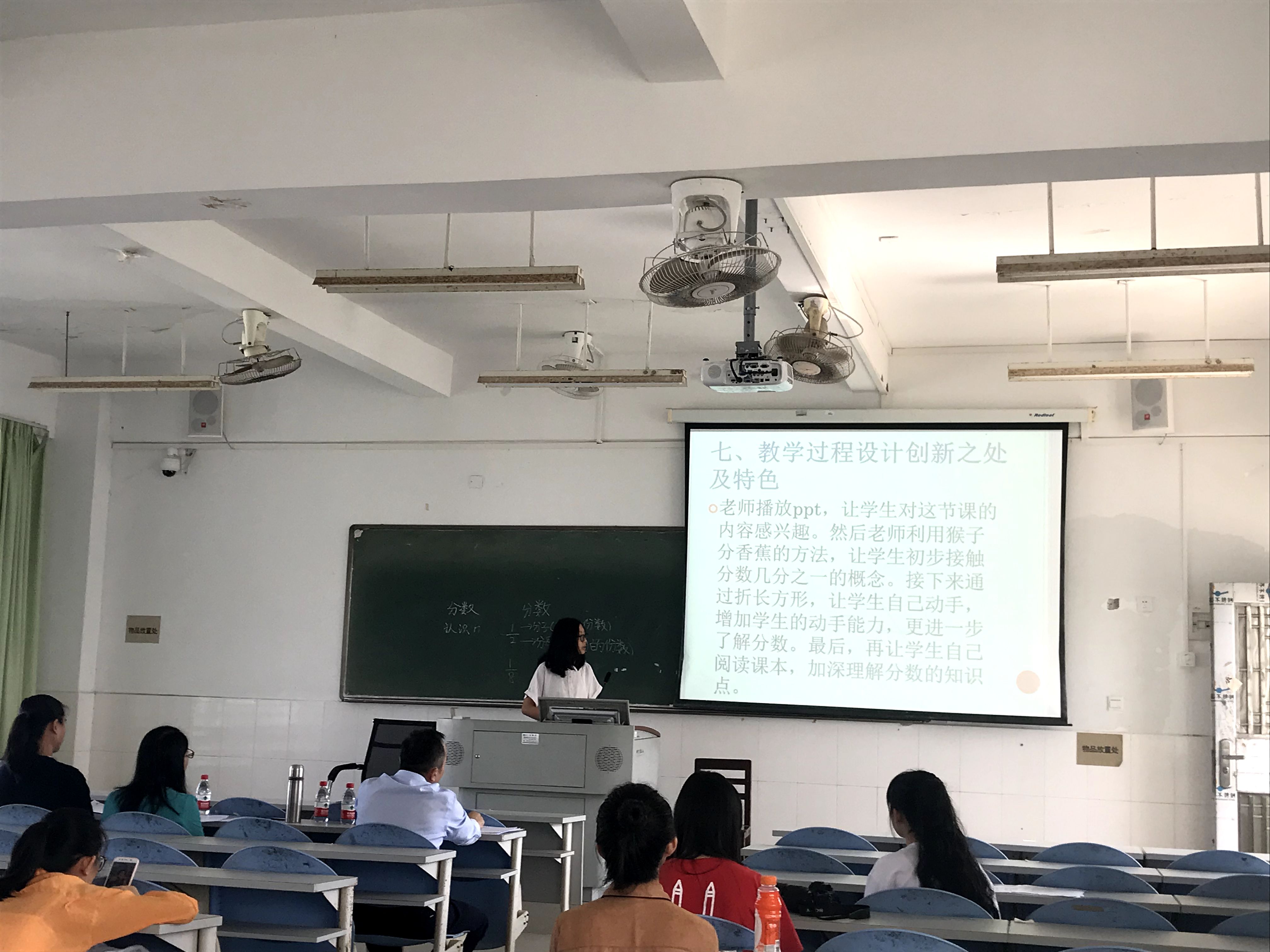 记得有一个名家曾经这样说过:一个精品往往是好的主题与好的形式的完美结合,既有美妙的构思,又独特的语言。而在这个舞台上,老师们将用最贴心的语言和最美妙的音符展示语言的魅力,展示教师的风采。2019年11月16日上午8时,由理学院主办的“小学数学、小学科学说课大赛”在实验B栋四¥和文科A栋五¥同时举行。小学数学组担任本次大赛的评委老师为陈明洁、符方健、吴冰、田军、曹鹏、陈蕾、陈振华、陈岳婷和吴钟熙等九λ老师,小学科学组担任本次大赛的评委老师为程睿睿、周南、朱为菊、张晓琳、龚景和李东瑾等六λ老师。
