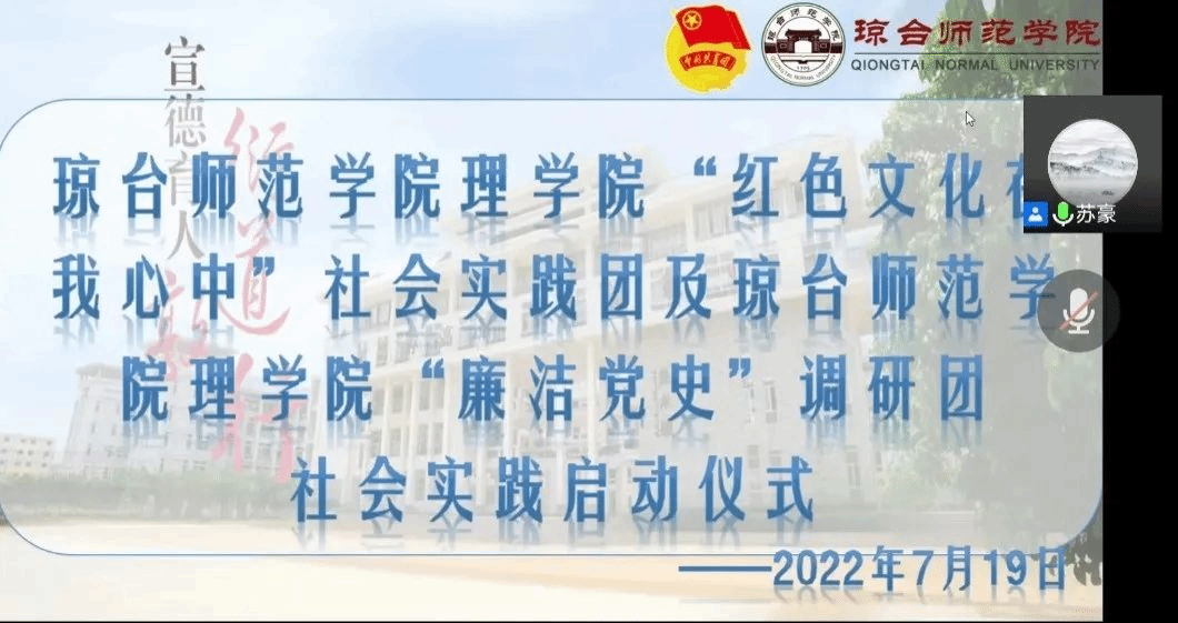 2022年7月19日进行了琼台师范学院理学院“红色文化在我心中”社会实践团及琼台师范学院理学院“廉洁党史”调研团社会实践启动仪式。