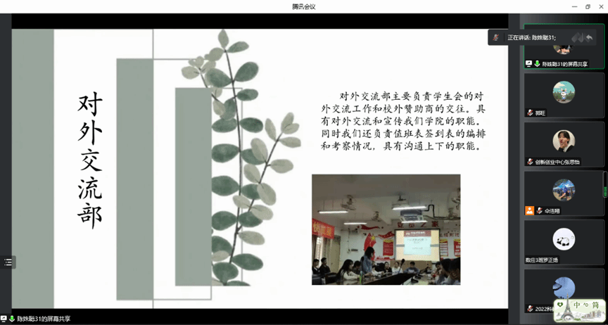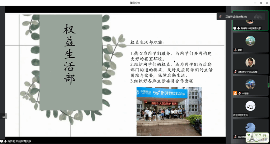 团委学生会介绍了各部门职能,权益生活部主要负责保障同学们的后勤生活,组织各班生劳委员做好查寝工作;文体艺术部主要负责组织各种有意义的文娱活动;对外交流部主要负责学生会的对外交流工作和校外赞助商的交往;综合管理部主要负责学院工作,组织、策划活动。
