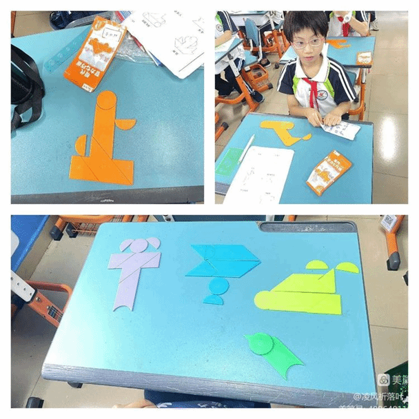 同学也非常的积极和配合老师,这给了教师很大的信心,用更多的热情去回应学生们。为了提高学生对智力七巧板的兴趣,启发学生思维,我们除了完成相应的课堂任务以外,还设计了动动脑筋的小游戏,学生不仅觉得有趣,思维也更活跃了。