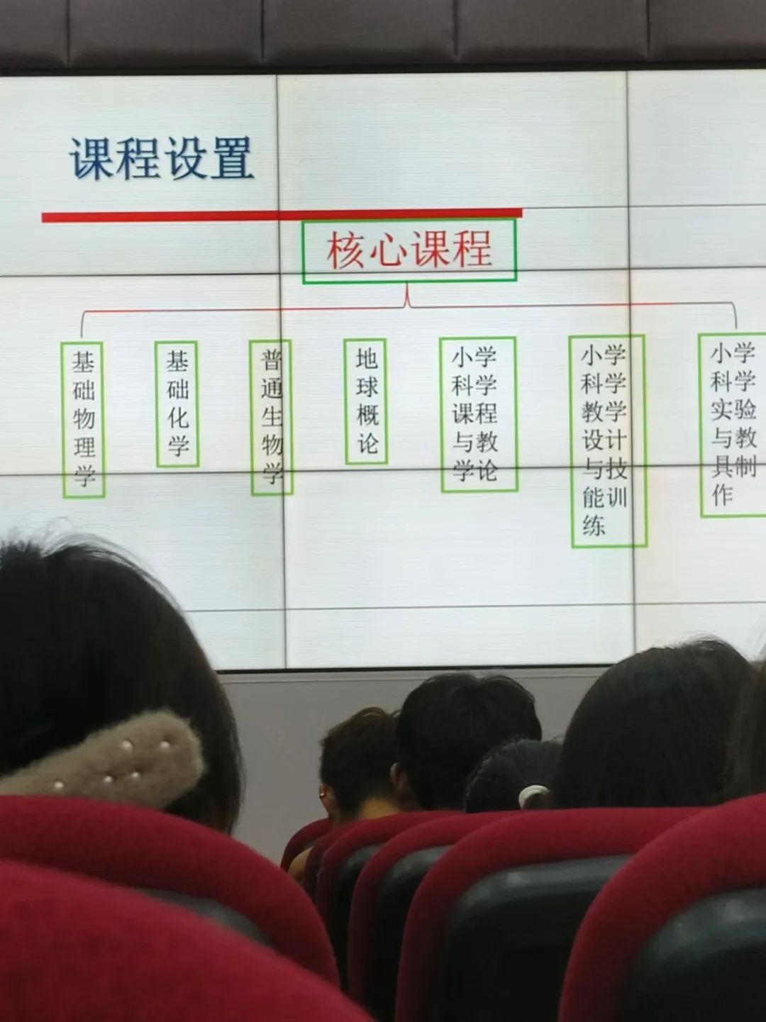 介绍会中张甲锋老师为同学们介绍了本专业具体的培养目标。本专业旨在培养具有坚定正确的政治方向、高尚的道德品质,具备扎实的科学知识、较高的科学和人文素养、较强的专业能力和动手能力、较强的科学教育能力,具有国际视野以及较强的创新创业精神和能力,能在小学从事“科学”或“综合实践活动”课程教学与研究工作的小学教师。通过张甲锋老师的具体介绍,同学们深刻认识到学好专业知识的重要性,只有学好专业知识,不断提升自己的专业素质,才能更好地适应未来职业发展的要求。