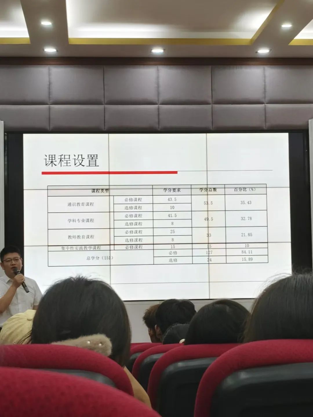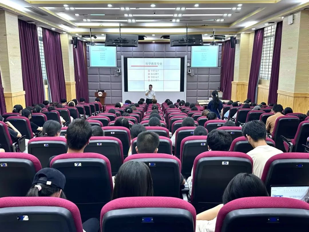 科学教育专业的课程设置丰富多样,在科学知识板块,涵盖了物理、化学、生物、地理等多学科的基础课程。学生将系统地学习科学的基本原理和前沿知识,构建起坚实的科学知识大厦。会上,张甲锋老师为同学们详细介绍了科学教育专业的课程设置及核心课程,能够帮助同学们了解专业重点,明确学习重点与方向,快速适应专业学习,做好学习规划。