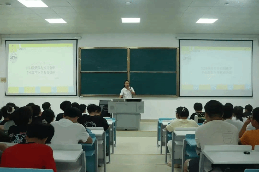 讲座伊始,陈岳婷老师先向全体2024级新生讲解了数学与应用数学专业未来的就业选择和涵盖的专业学习内容,使同学们对该专业有了进一步的了解。