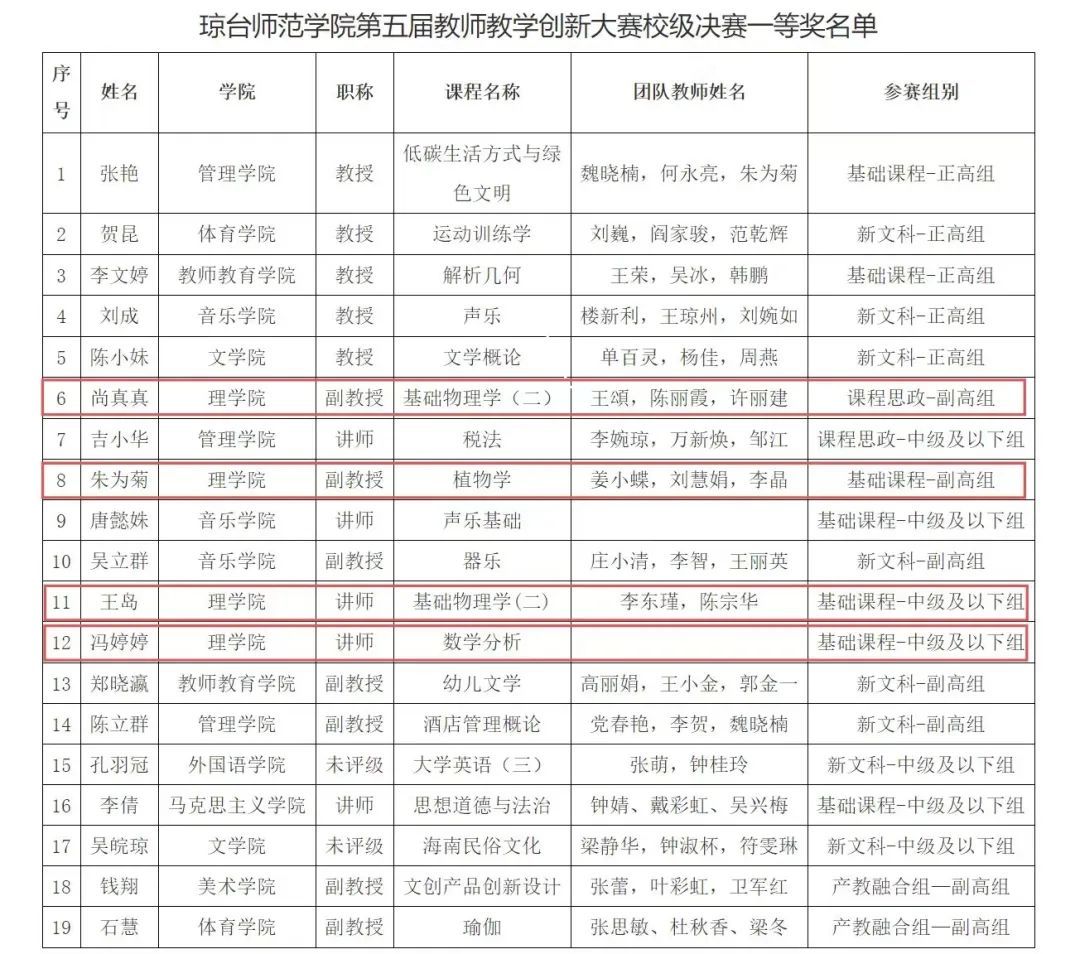 在琼台师范学院“第五届教师教学创新大赛”中,我院教师凭借扎实的专业素养、精湛的教学技艺和勇于创新的精神,一路过关斩将,斩获佳绩,为学院争得了荣誉!