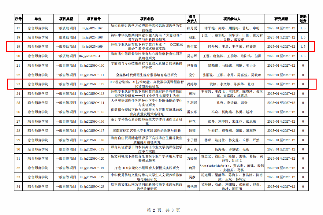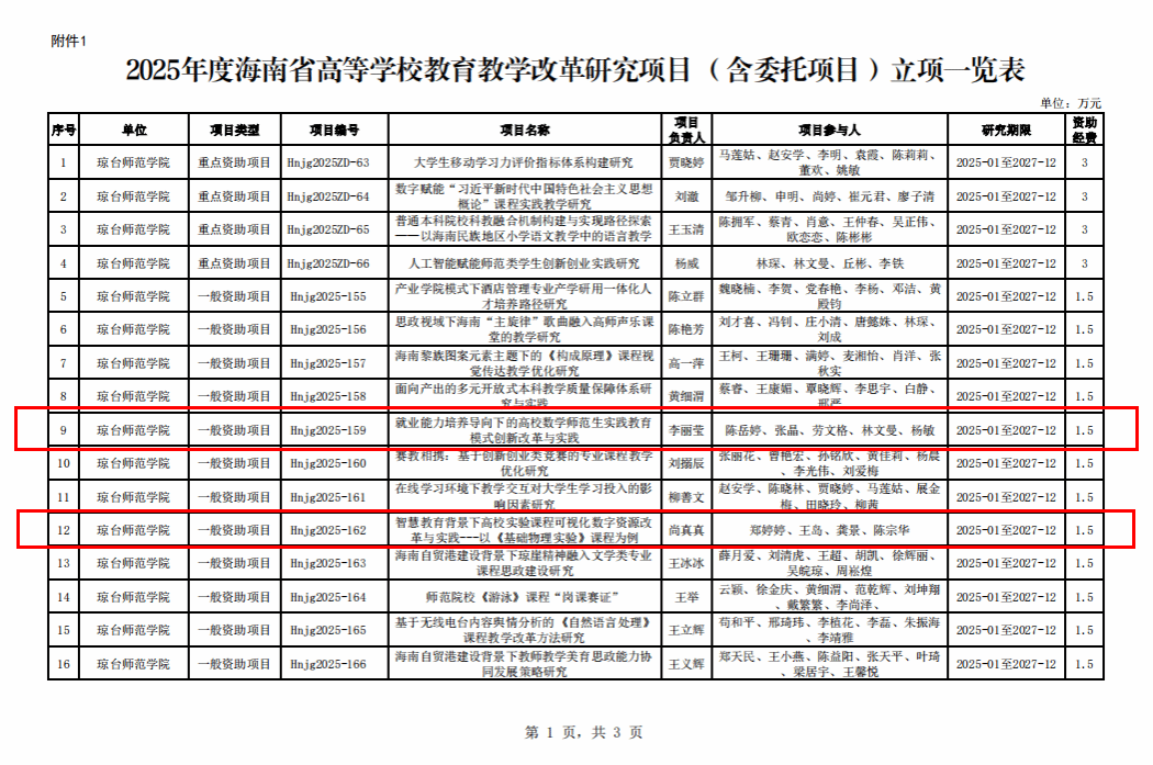 春耕夏耘结硕果,砥砺奋进谱新篇!我院在2025年度海南省高等学校教育教学改革研究项目(含委托项目)及科学研究项目申报中传来喜讯——教育教学改革项目立项5项,科学研究项目立项4项,彰显我院在教育教学创新与科研攻关领域的强劲实力!