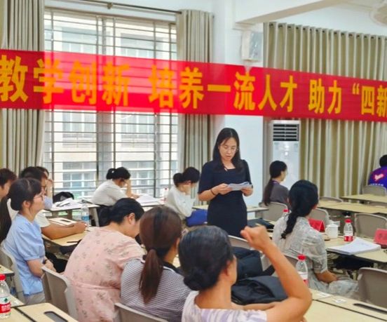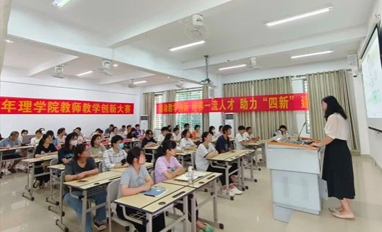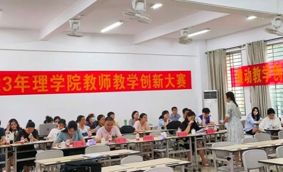 为深入学习贯彻习近平总书记关于教育的重要论述,落实立德树人根本任务,深化教育教学改革,助力课程思政建设和“四新”建设,推动信息技术与教育教学融合创新发展,切实提升理学院教师教学能力与水平,同时为第四届全国高校教师教学创新大赛海南赛区比赛储备优秀参赛选手,理学院于2023年6月11日在实验楼B304组织开展了2023年理学院教师教学创新大赛。本次大赛主题为推进教学创新,促进本科教育高质量发展。