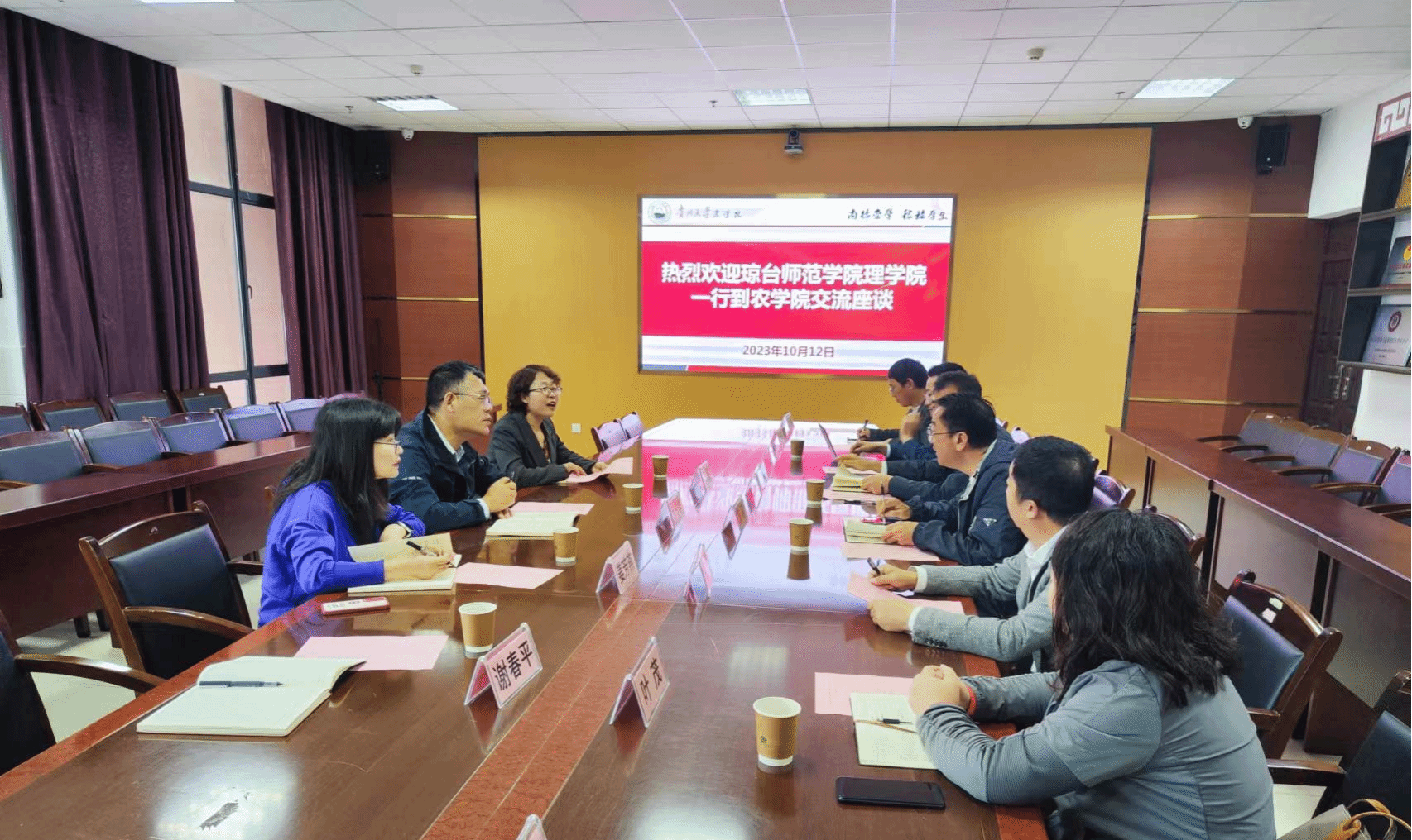 库俊华院长在交流中介绍了琼台师范学院理学院的办学情况和专业设置,重点介绍了生物科学系的师资力量、科研平台建设以及人才培养情况。王星教授等还汇报了学科研究方面取得的进展。
