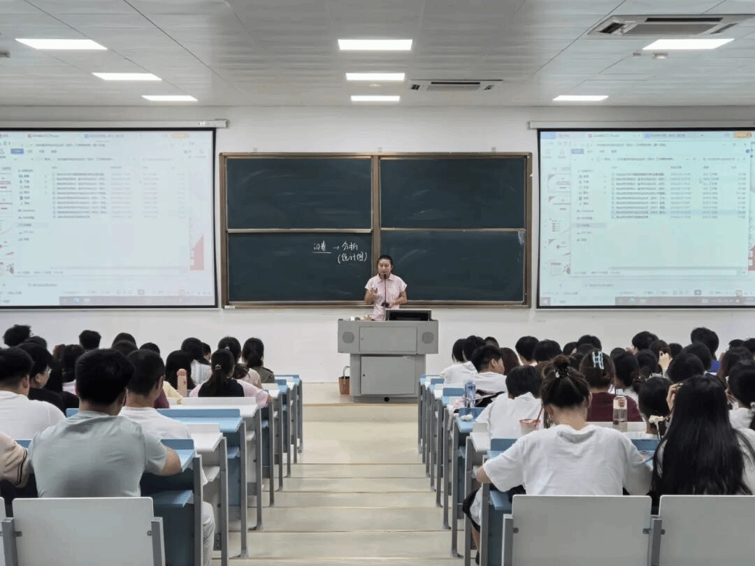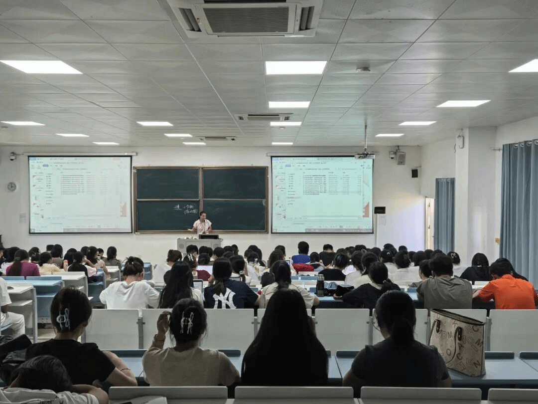 陈岳婷老师首先向全体同学详细阐述本次讲的召开目的,并向即将前往实习单位的大四学生明确实习期间的重要注意事项。
