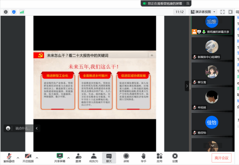 为深入学习、宣传、贯彻党的二十大精神,坚持党在新的历史条件下对共产党执政规律、党的建设规律的深刻把握,为着眼推进中国共产党在新时代新征程的使命任务,为落实习近平总书记“三个着力”的重要要求和一系列重要指示,理学院团委各组织于2023年1月6日到11日组织开展了学习“党的二十大精神”为主题的线上腾讯会议。会议由团委各组织负责人主持。