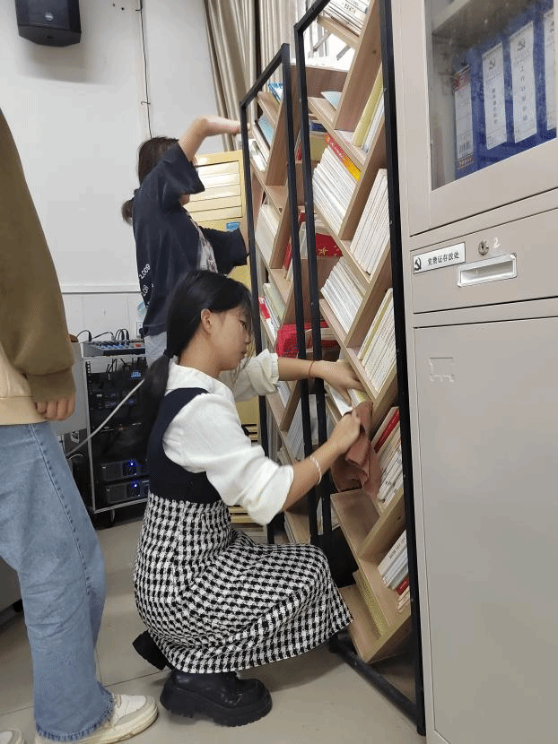 接着,乐宁童同志带领大家进行简单的任务分配后,大家都拿上自己的清洁工具开干啦!其中,有位同学拿起鸡毛掸子开始掸墙上的灰;有同学用扫把把地上的垃圾和灰尘清扫一遍,把每个角落都打扫得干干净净;还有些同学提着水桶去厕所打水,搬物品等。大家不怕苦,不喊累,分工明确,齐心协力。