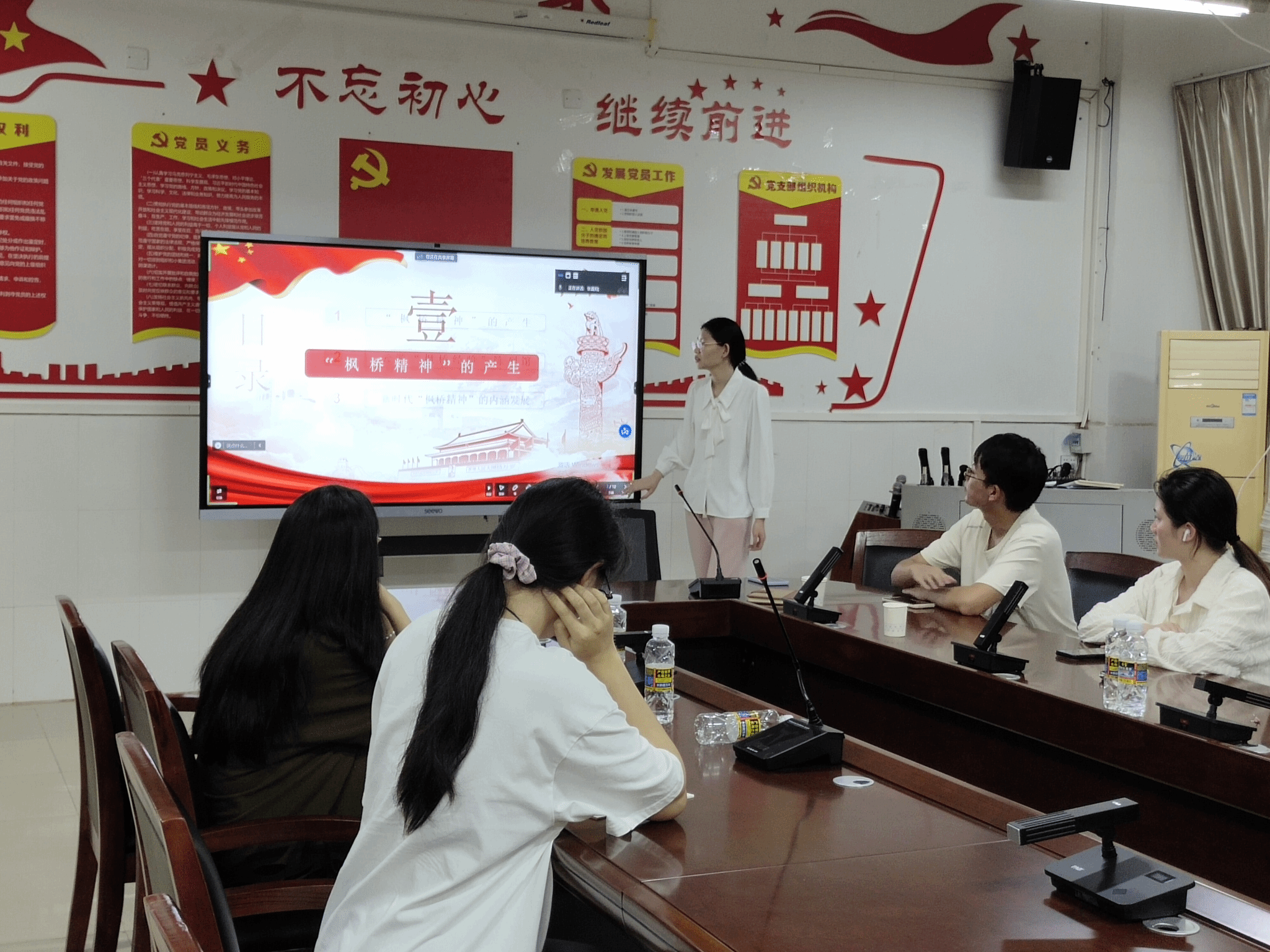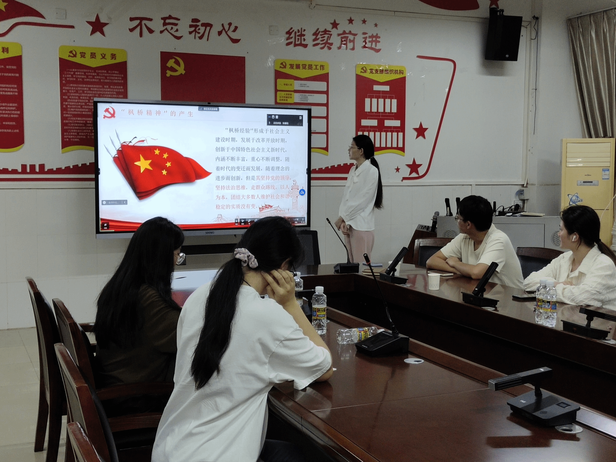 最后,在张晨阳同志的主持下,大家进行了学习分享。郭旺同学表示,发展四十余年的“枫桥经验”历久弥新,体现了党全心全意为人民服务的根本宗旨,体现了党关于基层治理的全新经验,身为新时代的大学生要积极学习“枫桥精神”中的经验启示,并且理论联系实际,把经验运用于实际生活中。