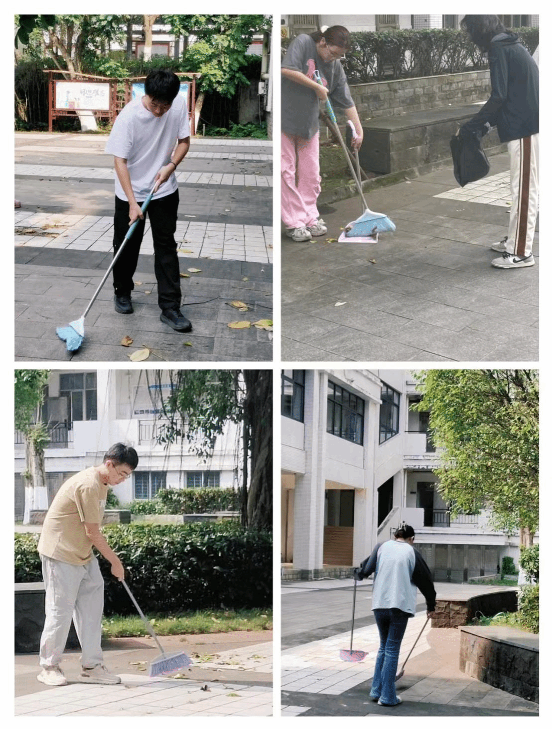 以人民为中心,且求真务实,是从实际出发,从人民根本出发的重要体现。为了进一步加强同学们的奉献意识和责任态度、构建校园和谐氛围、维护校园优美环境、增强同学们理论与实际相结合的行动能力。2024年3月16日下午,理学院学生党支部开展了“我为群众办实事”第二期——清扫落叶,美化校园。