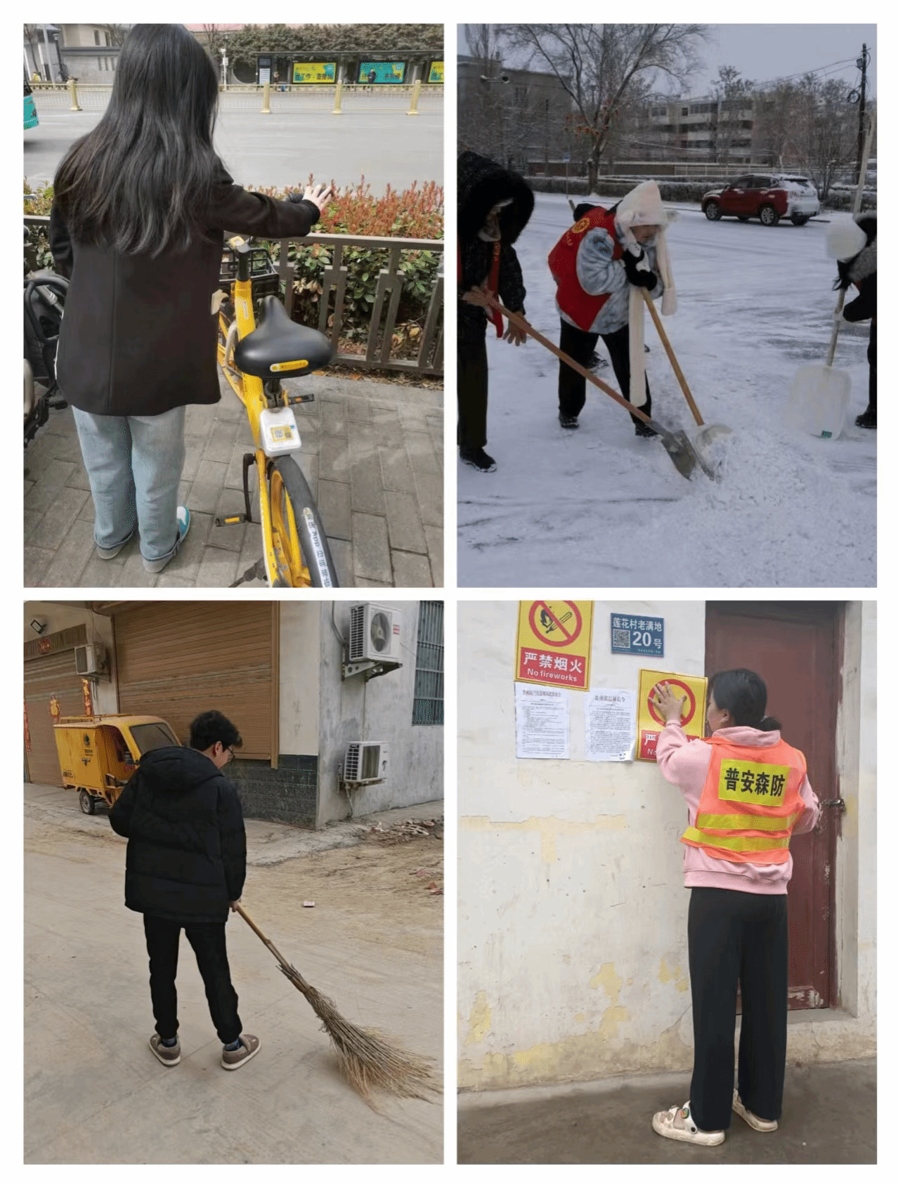 在实验楼小院“清扫落叶,美化校园”活动如火如荼进行的同时,未返校的党员同志也通过加入当地社区实践的形式参与了本次“我为群众办实事”活动。在活动中,有的党员同志参加了当地的护林防火活动,有的参加了社区的铲雪清洁活动,还有的参加了基层的整理共享单车活动。在各种活动中,大家都本着“全心全意为人民服务”的宗旨,发扬吃苦在前的斗争精神,为“我为群众办实事”活动的顺利开展贡献了自己的力量。