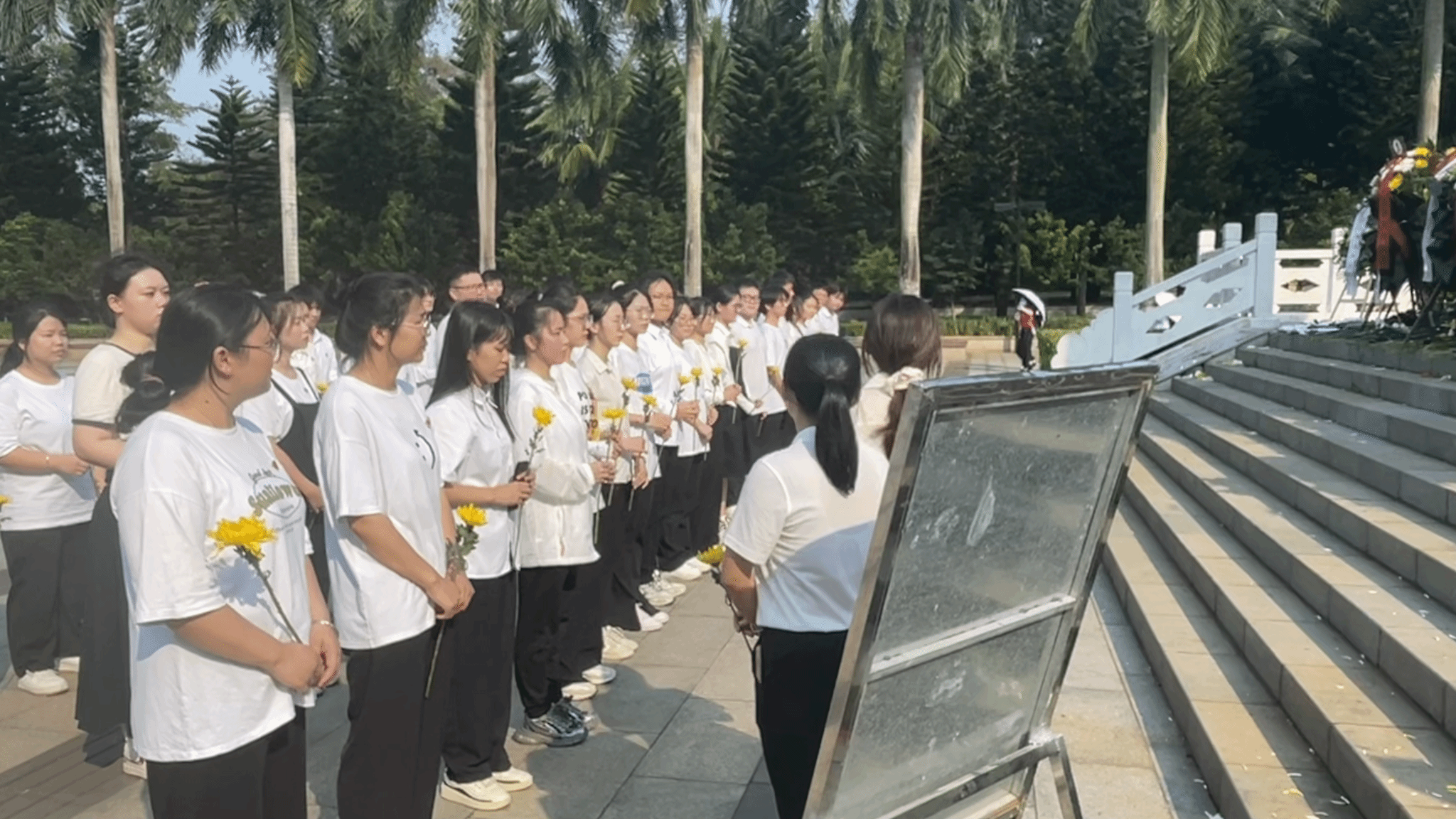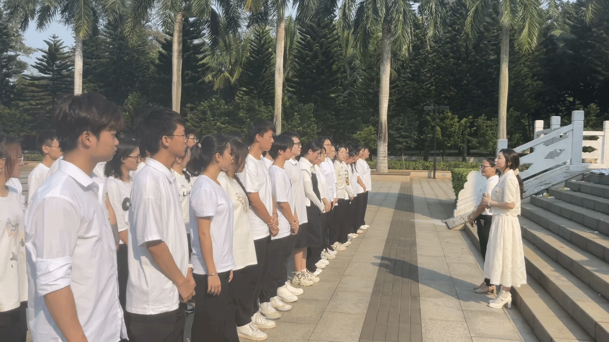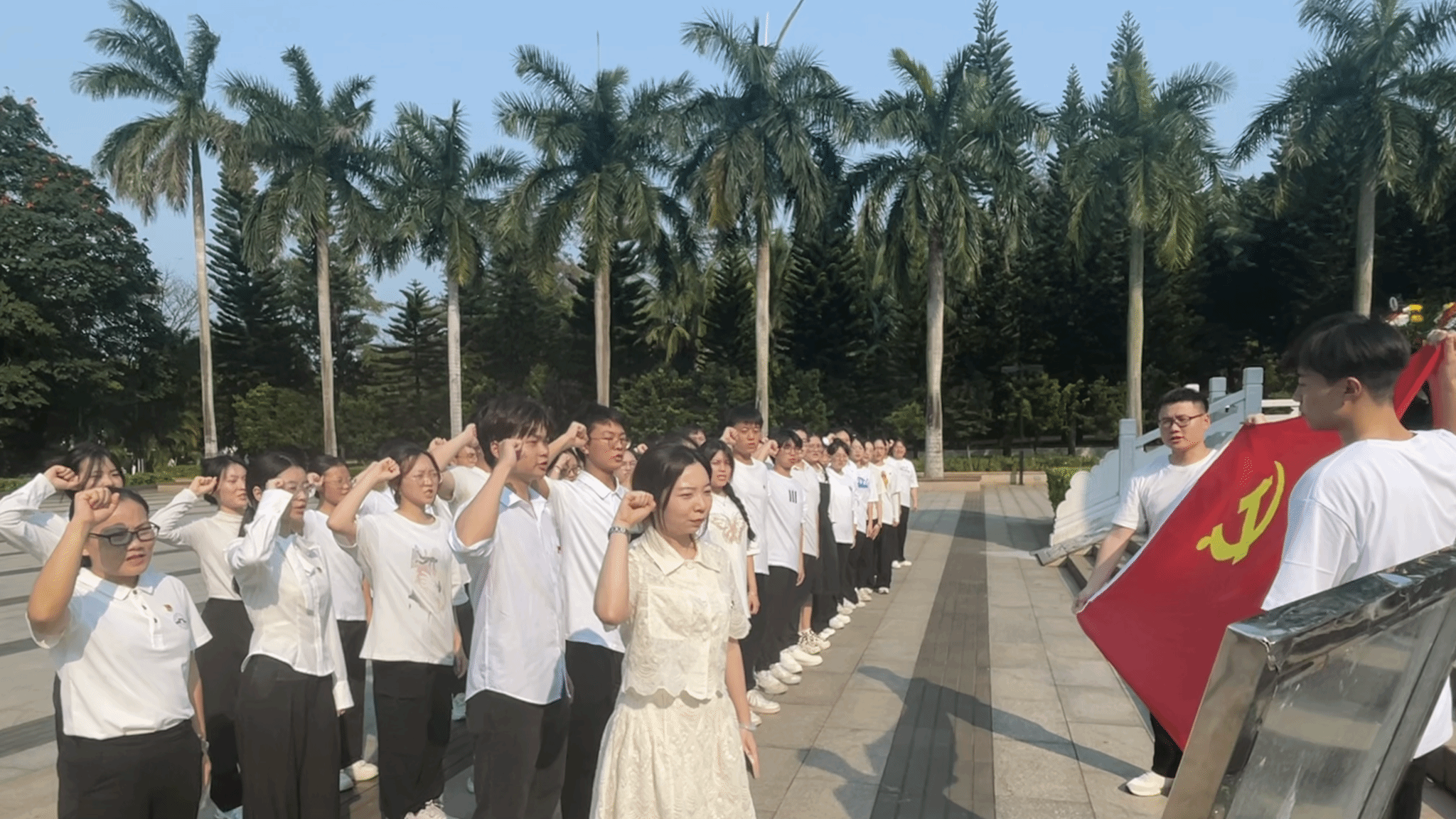 炎热的午后,党员、入党积极分子们顶着烈日踏入解放海南岛战役烈士陵园,园中庄严肃穆的氛围使我们不禁肃然起敬,每一个脚步都显得分外沉重。