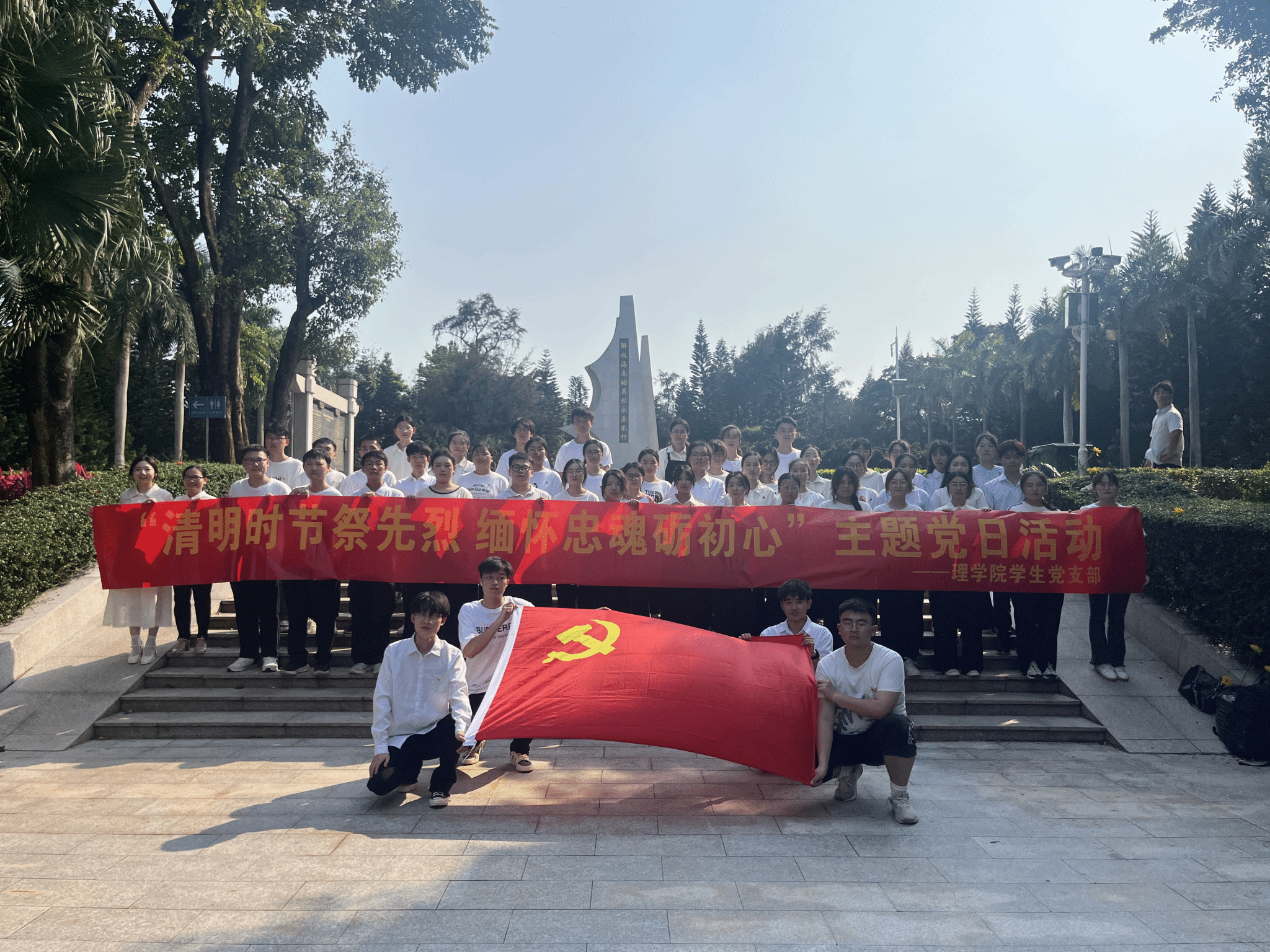 2024年是新中国成立75周年,也是海南岛全岛解放的74周年。70多年前,革命先辈们在此历经56天的浴血奋战,赢得了海南岛战役伟大胜利。为了铭记这段历史、缅怀先烈,传承、发扬先辈们的伟大革命精神,激发学生对革命先辈的崇高敬意,同时加强同志们的民族自豪感和社会责任感,理学院学生党支部于2024年4月2日开展“清明时节祭先烈 缅怀忠魂砺初心”主题党日活动,各党员、入党积极分子共同前往解放海南岛战役烈士陵园祭扫革命先烈。