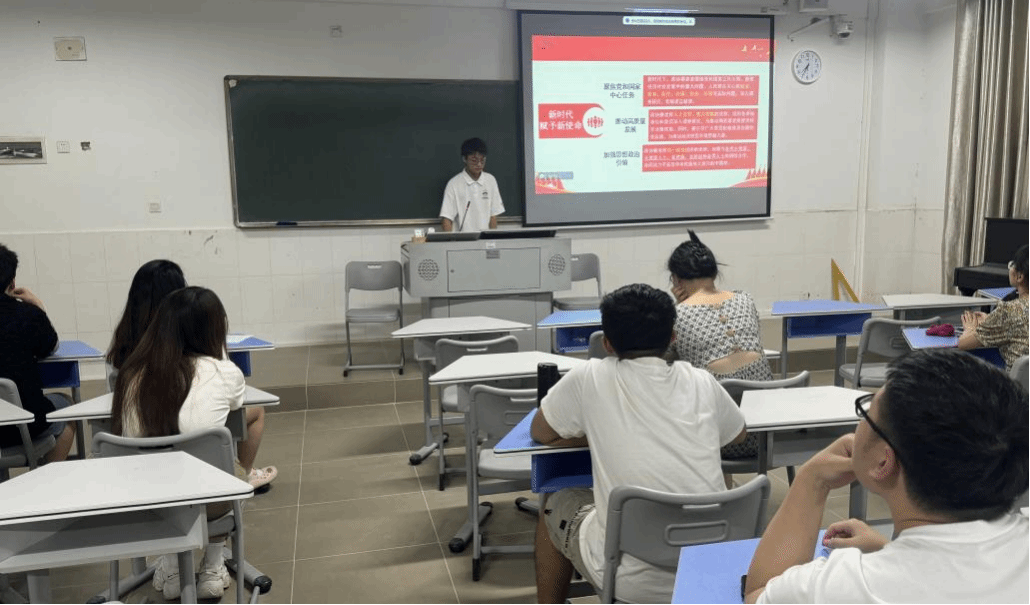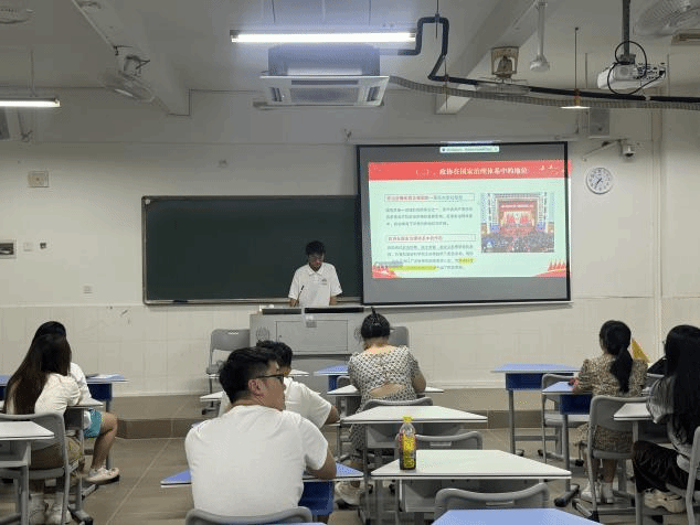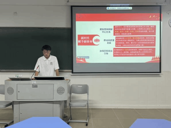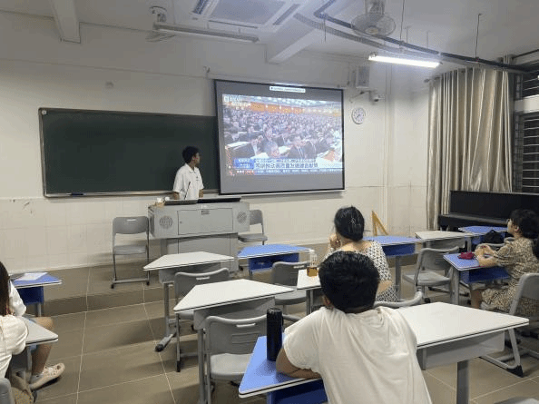 首先,牟桂林同学针对会议背景与重要意义进行宣讲,了解此次会议是在全国上下深入学习贯彻中共二十大精神,全面建设社会主义现代化国家新征程的关键时期召开的一次重要会议。高举旗帜、真抓实干、团结奋进,汇聚了正能量、提振了精气神。让同学们深刻领会本次会议是在全面建设社会主义现代化国家新征程中召开的一次重要会议,对于推动国家发展具有重要意义。
