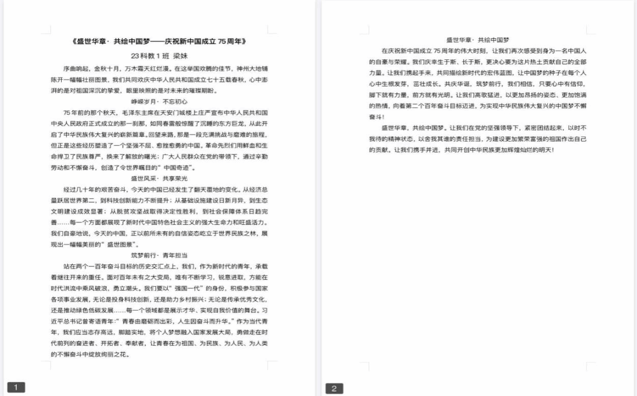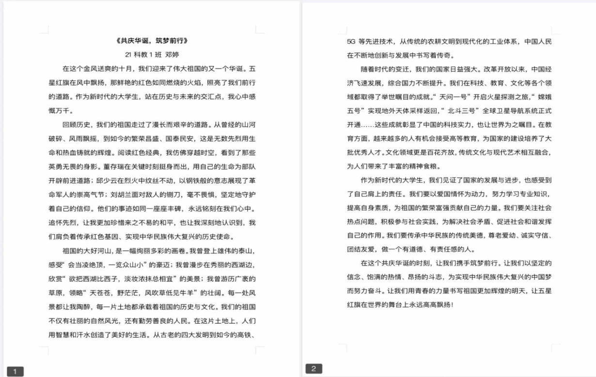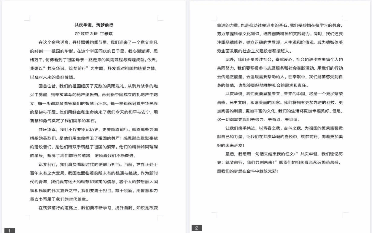 值此中华人民共和国成立75周年之际,为弘扬理学院学生党支部爱国主义精神,展现国家发展成就,增强理学院学生党支部成员民族自豪感,2024年10月3日理学院学生党支部开展了以“共庆华诞,筑梦前行”为主题的征文活动。