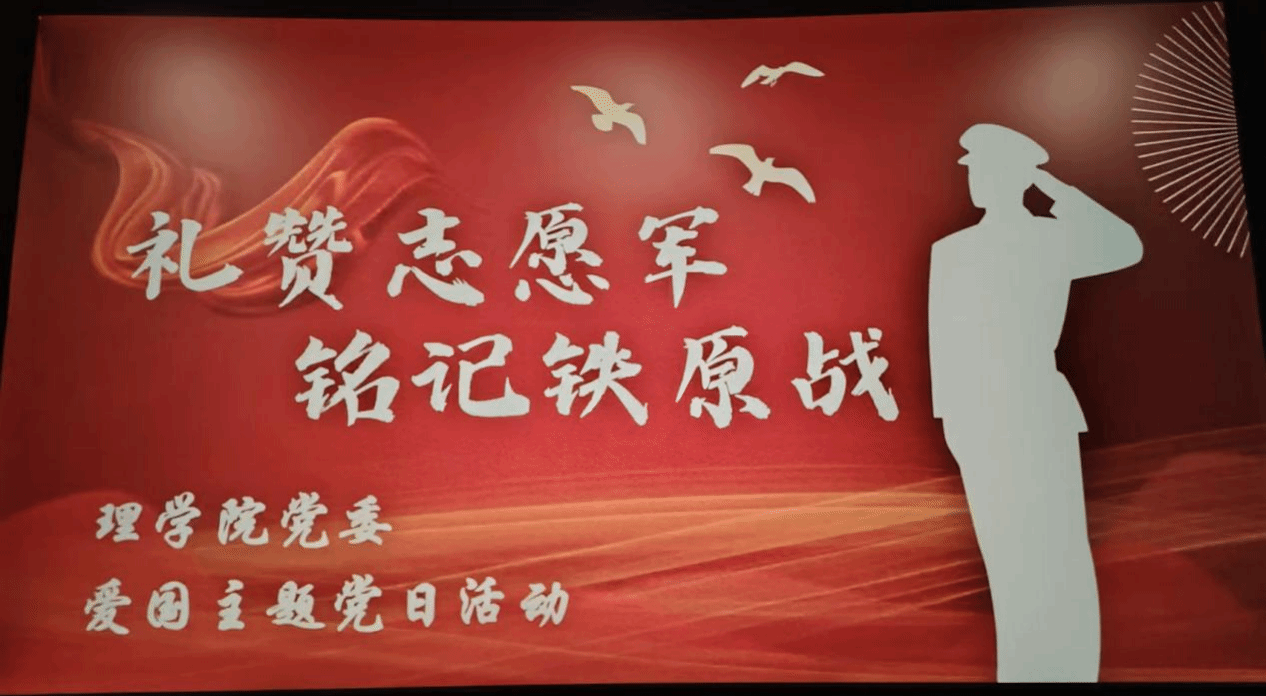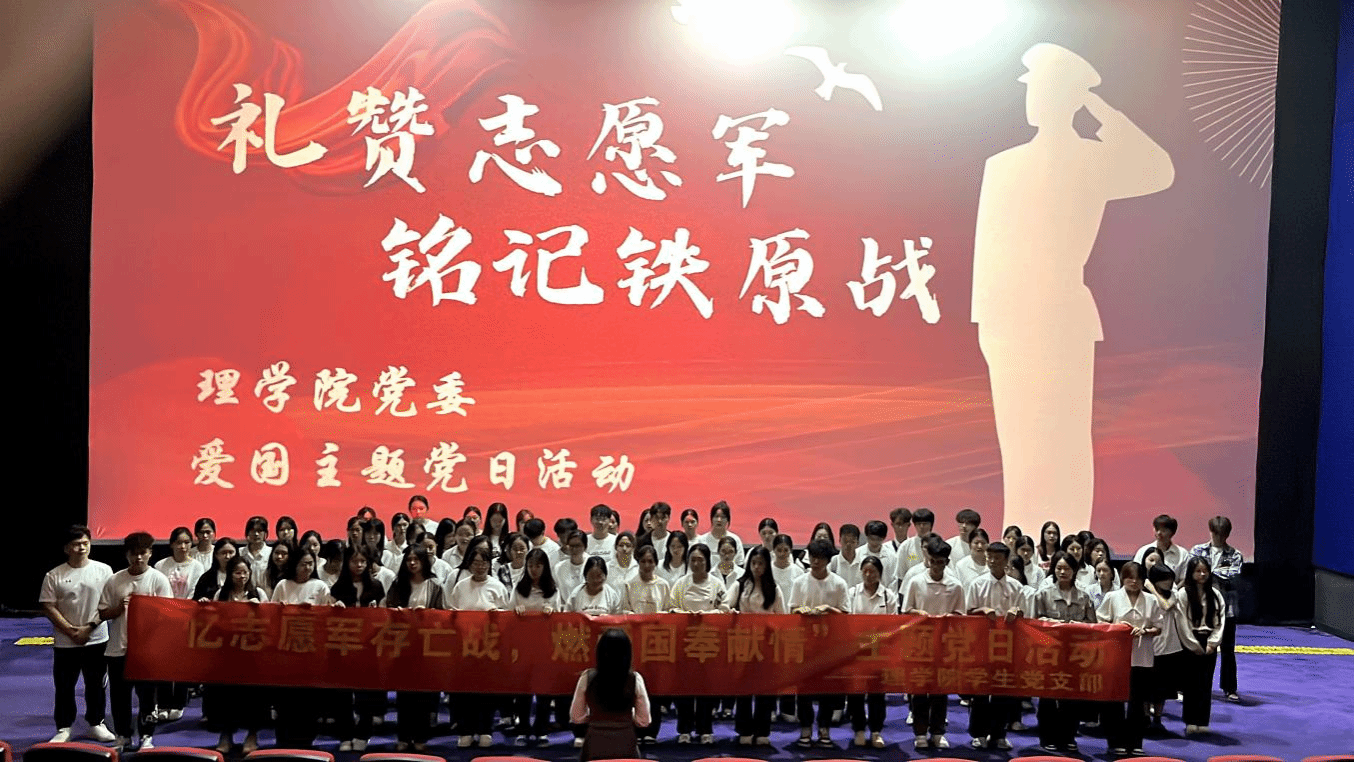 为庆祝中华人民共和国成立75周年,进一步扎实推进党史学习教育,弘扬爱国主义精神,增强同志们的责任感和使命感,2024年11月5日下午,理学院学生党支部开展以“礼赞志愿军,铭记铁原战”为主题的观影主题党日活动,由学生党支部书记毛文迈老师带领各党员、发展对象、入党积极分子共同前往中视国际影城(国秀城店)观看《志愿军:存亡之战》。