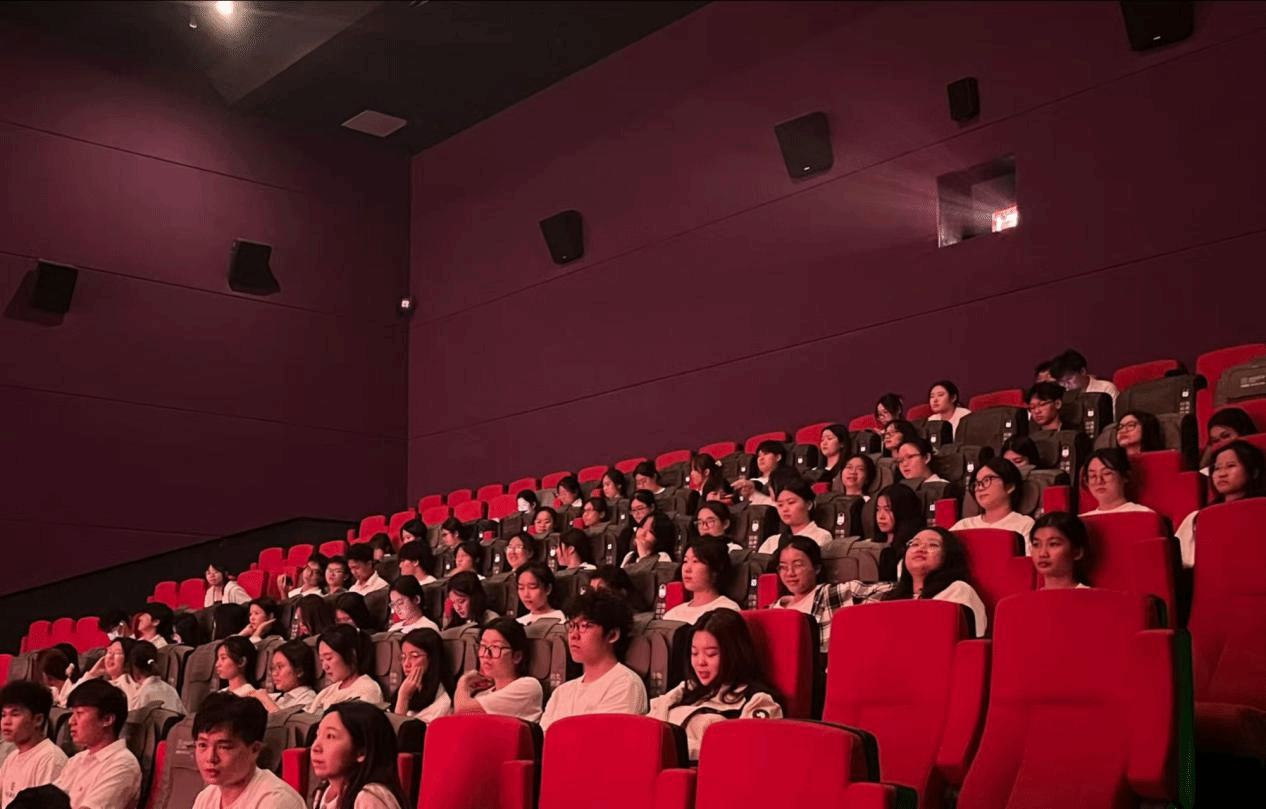 当日下午1时40分,所有同志准时到达集合地点,并以小组为单位排队和清点人数。集合完毕后,同志们听从安排有序上车,乘坐大巴车前往影院。抵达影院后,同志们满怀期待地走入影厅,有序落座,等待电影的放映。