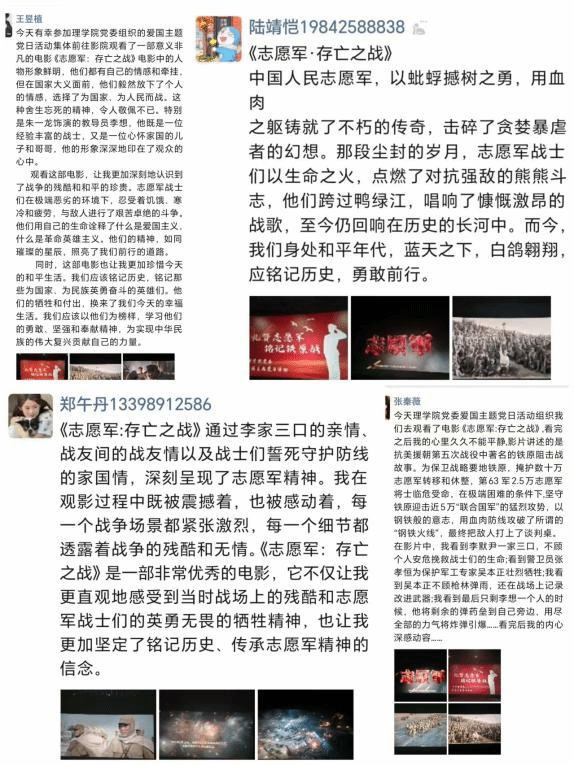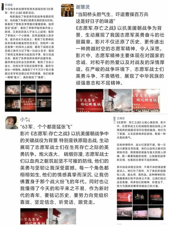 在观看完电影后,同志们都感受颇多,纷纷在朋友圈发表自己的心得体会。