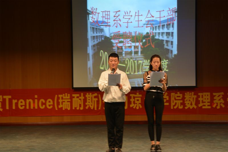 10月20日晚上,数理系2016-2017学年学生会受聘仪式在综B音乐厅隆重举行。系党总支书记陈明洁、学工办主任文海花、全体辅导员和学生干部出席。