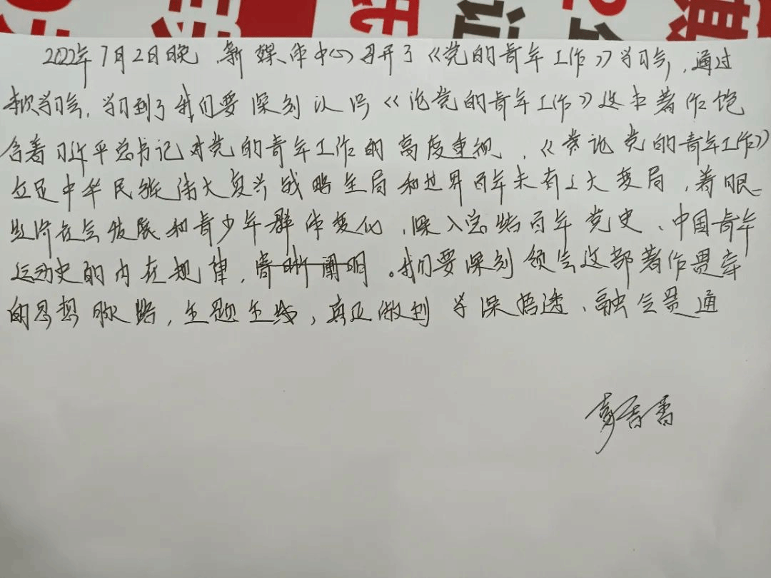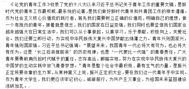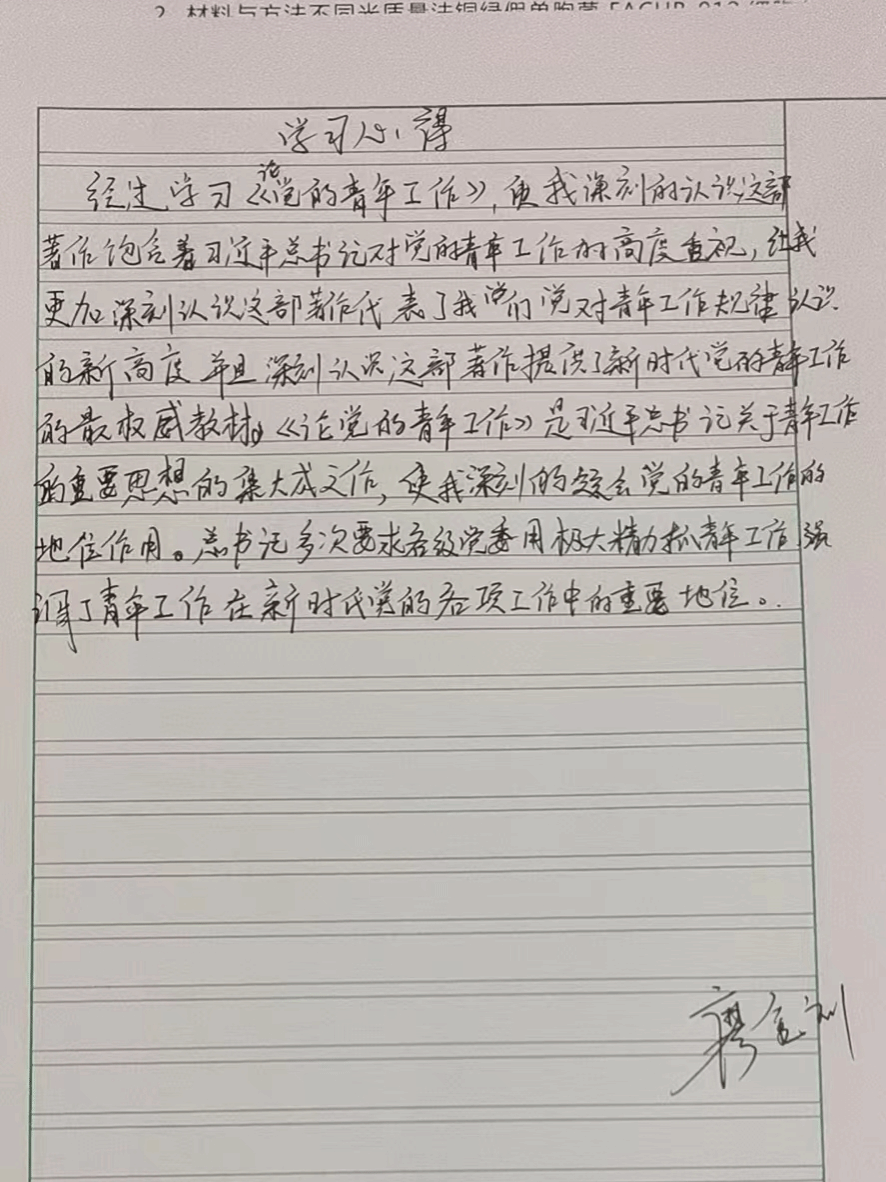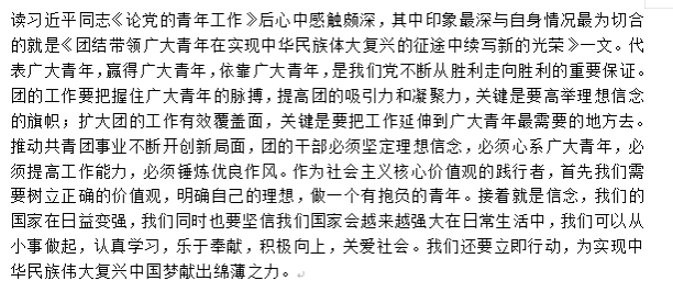 在本次线上学习会议中,团委各组织深刻认识《论党的青年工作》的重大意义,深刻领会《论党的青年工作》的丰富内涵,学懂弄通做实《论党的青年工作》的核心要义。团委各组织干部纷纷表示要不忘初心,牢记使命,以中华民族伟大复兴中国梦为己任,用奋斗书写新时代的青春答卷,用实际行动践行“请党放心,强国有我”的铮铮誓言。