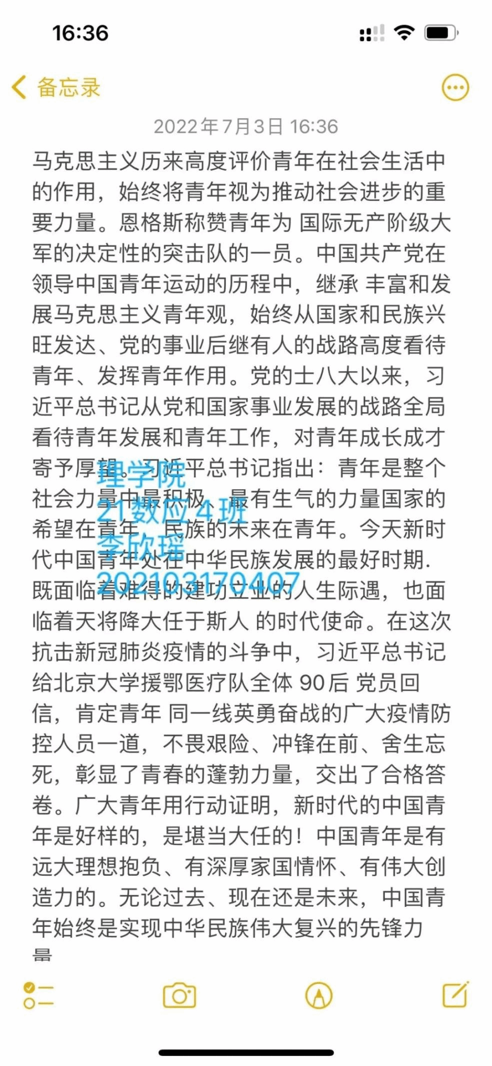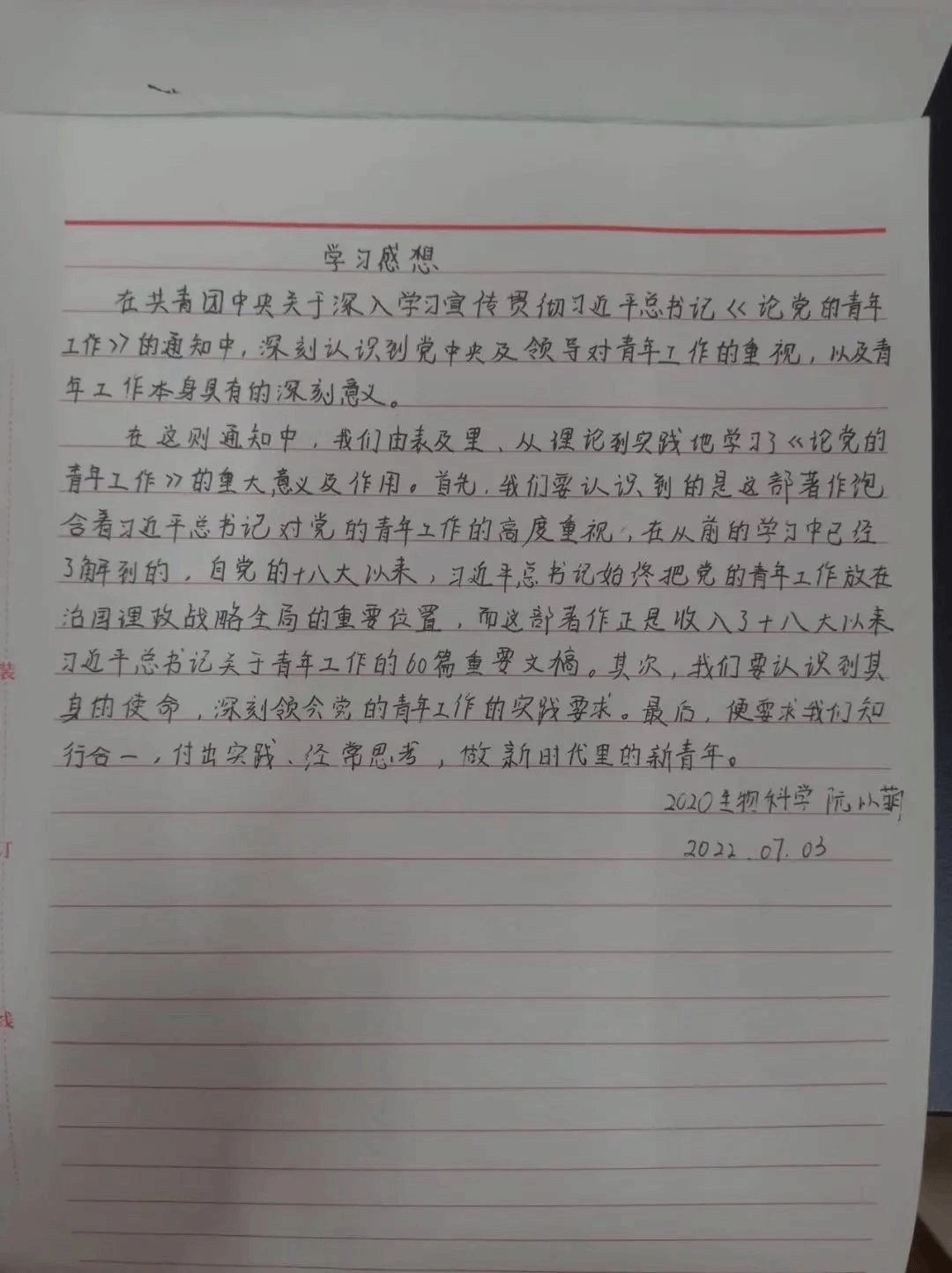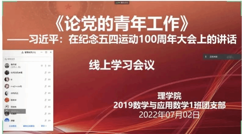 为深入学习领会习近平总书记关于青年工作的重要论述,着力推动学生工作高质量发展。2022年7月2日,理学院各班级团支部组织开展了《论党的青年工作》线上学习会议。通过此次学习,各团支部的团员们对中国共产主义青年团有了新的认识。