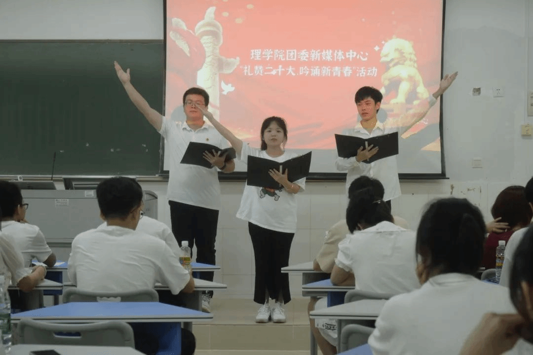 为进一步提高党员、入党积极分子、共青团员的思想觉悟,加深学院共青团员对中国共产主义青年团的认识,增强自身责任意识,理学院团委特此开展“学思践悟二十大,踔厉奋发新征程”主题系列活动,并开展“礼赞二十大,吟诵新青春”主题的教育活动。这将有助于同学们加强团的组织建设,继承、发扬优良传统,激发同学爱国热情,引导同学争当时代青年先锋。