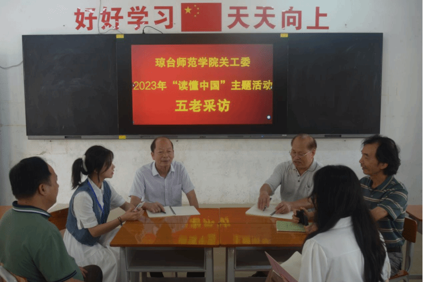 为深入学习宣传贯彻党的二十大精神,同时将开展2023年“读懂中国”主题教育活动作为其精神落地生效的重要举措。2023年6月9日,在理学院党总支劳文格副书记、关工委王立紫副主任、姚振学委员的带领下,理学院师生一行人赴临高县景文学校开展采访“五老”活动。与退而不休,为少年教育再添薪火的景文学校黄启诗校长展开深刻的座谈采访活动,挖掘、记录、整理其入党初心和历程及为党奋斗的感人事迹和真实感悟。