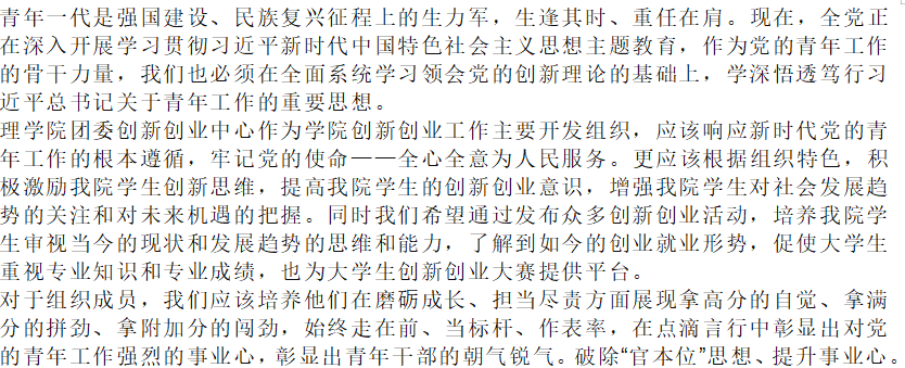 在会议上,理学院团委各组织代表纷纷发言,表示青年一代是强国建设、民族复兴征程上的主力军,我们作为新时代的主力军应该生逢其时、重任在肩。用党的科学理论武装自己,用党的初心使命感召自己,用党的光辉旗帜指引自己,用党的优良作风塑造自己。