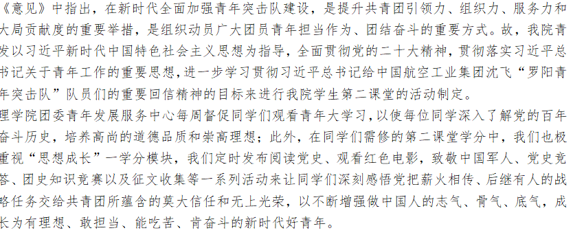 为深入学习宣传贯彻党的二十大精神,贯彻习近平总书记立足党和国家事业后继有人、中华民族永续发展任务。在新时代全面加强青年突击队建设中,共青团中央印发《关于加强新时代青年突击队工作的意见》,激励广大团员青年在以中国式现代化全面推进中华民族伟大复兴征程中挺膺担当、攻坚克难,充分发挥生力军和突击队作用。
