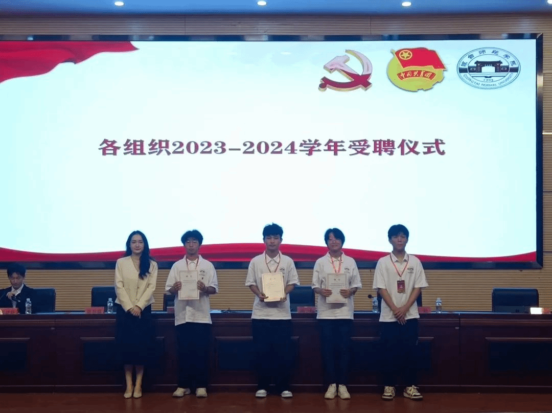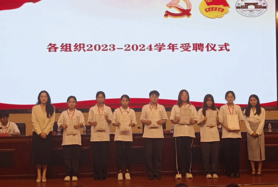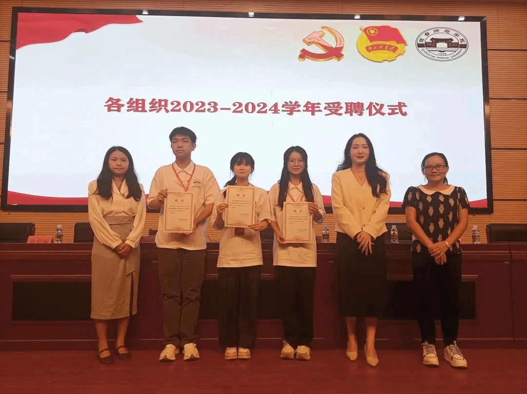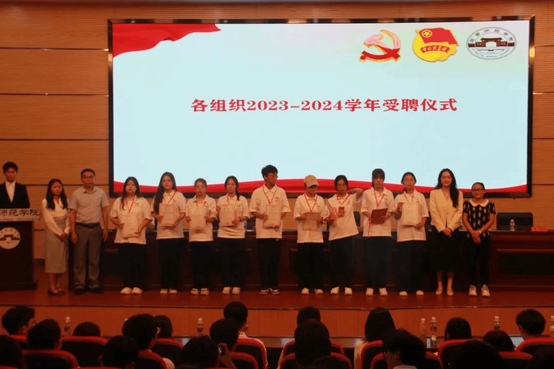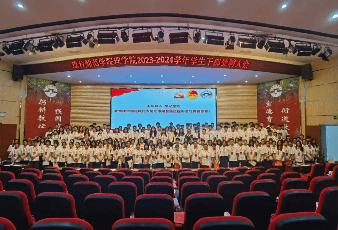 为增强学生干部的责任感和使命感,激发学生干部的工作热情,理学院于2023年11月7日在图书馆一楼报告厅举行2023-2024学年学生干部授聘仪式。