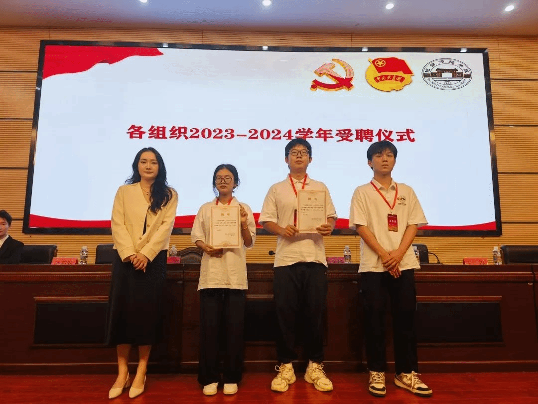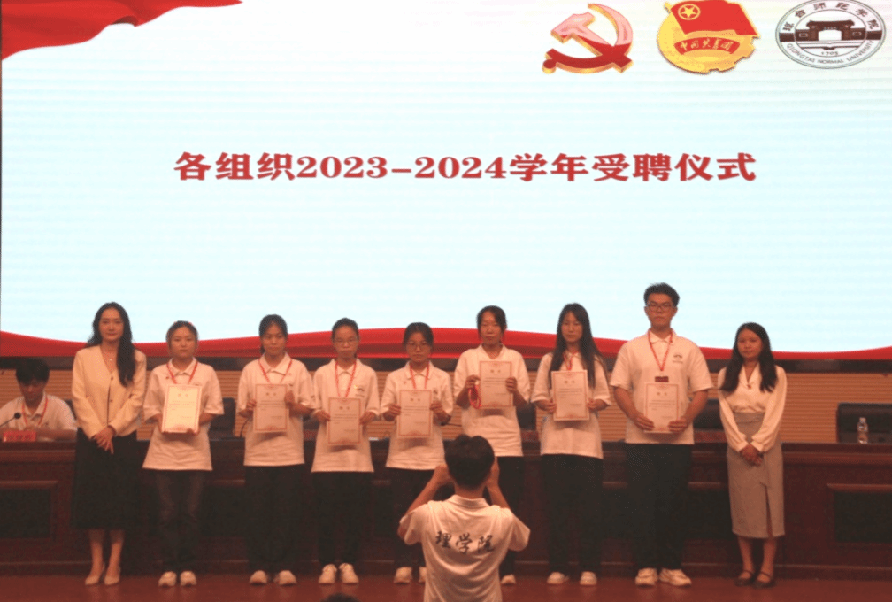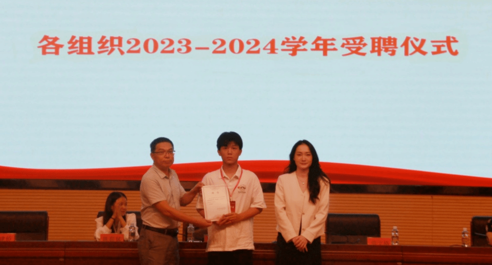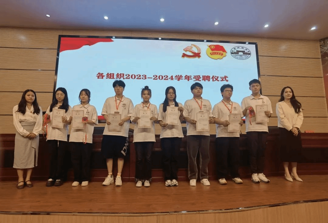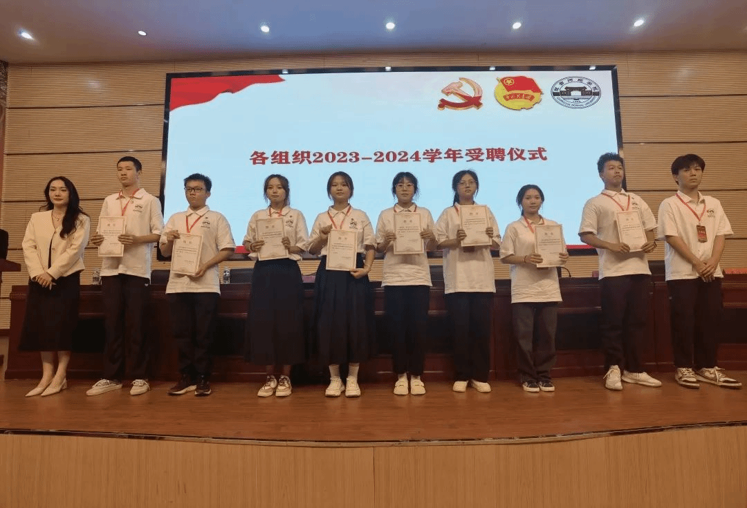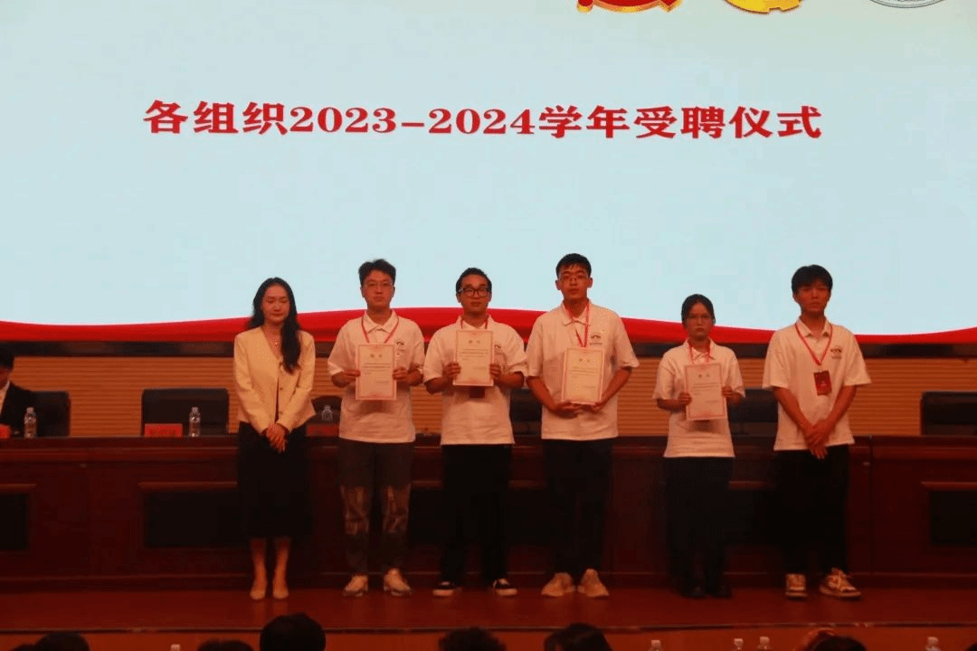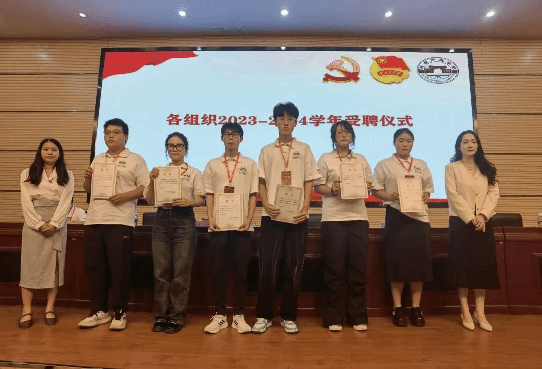 参会领导老师为各组织干部颁发聘书,并与各组织学生干部合影留念。