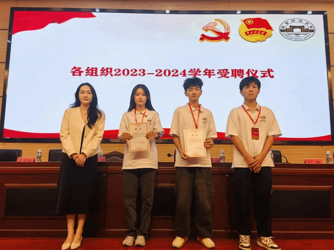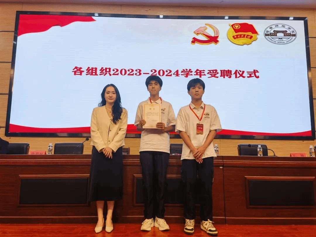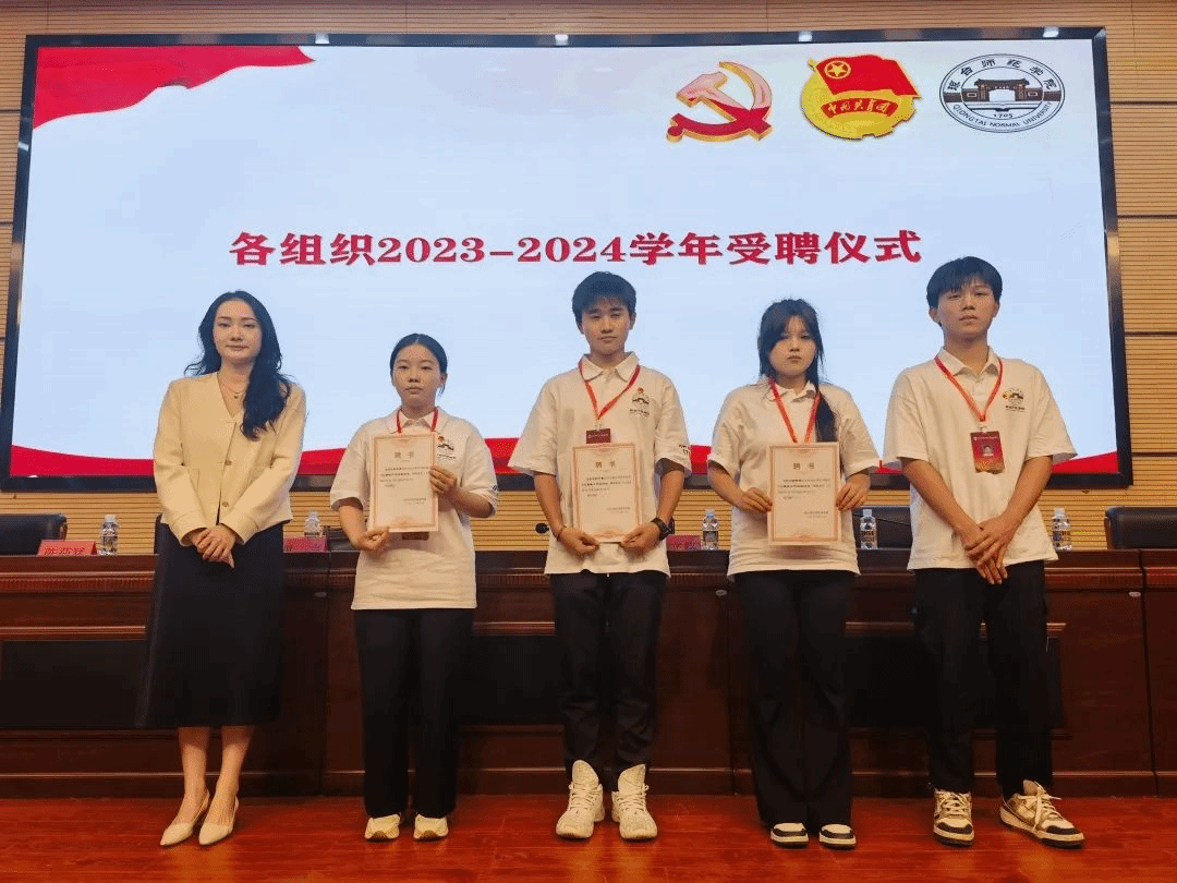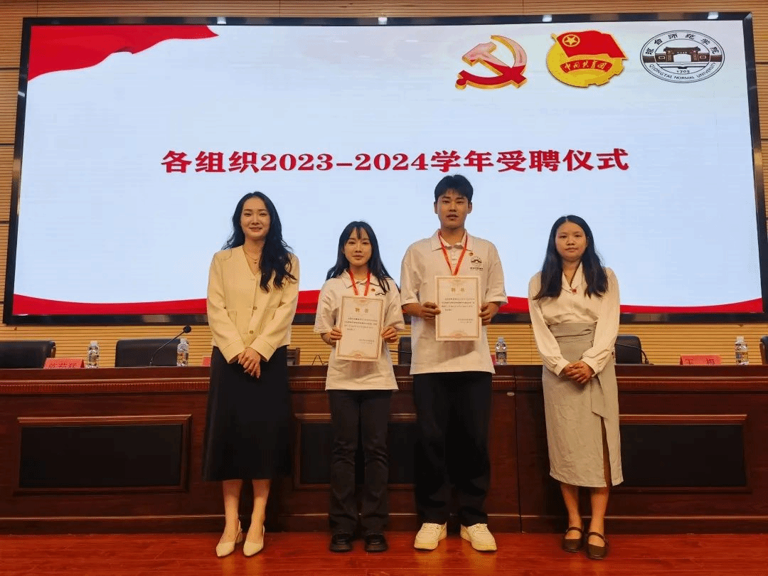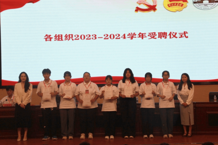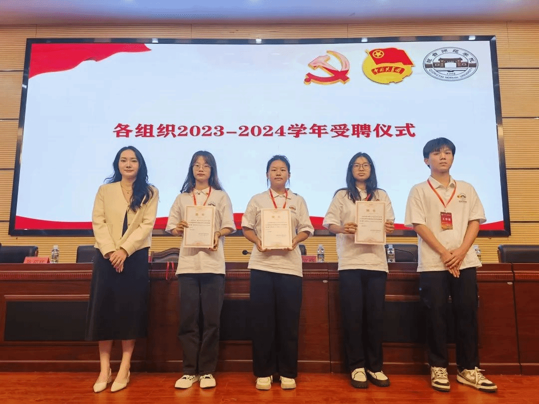 参会领导老师为各组织干部颁发聘书,并与各组织学生干部合影留念。
