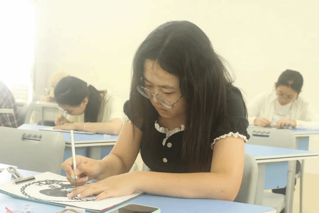 比赛过程中,同学们将身心都投入到刻纸艺术中