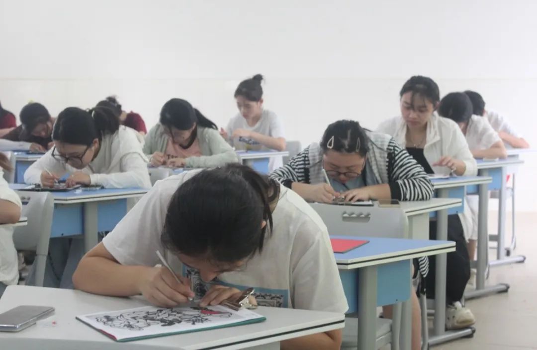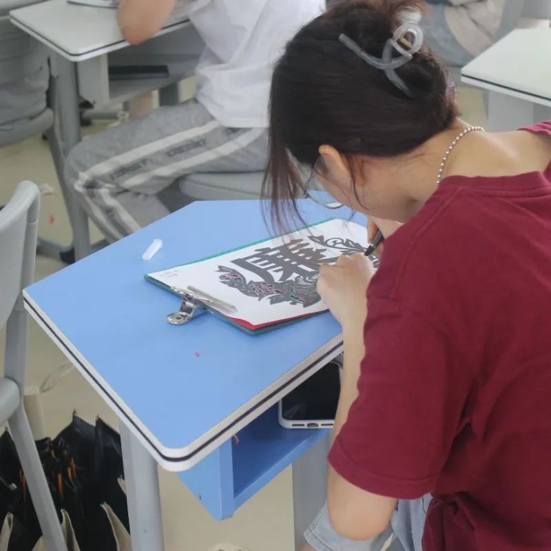 现场十分安静,同学们都专注于面前的纸张,一双双巧手在赛场上刻画出优美的作品,身临其境地体会到了中华文化博大精深的历史与内涵。