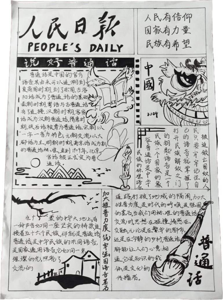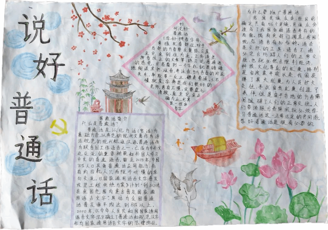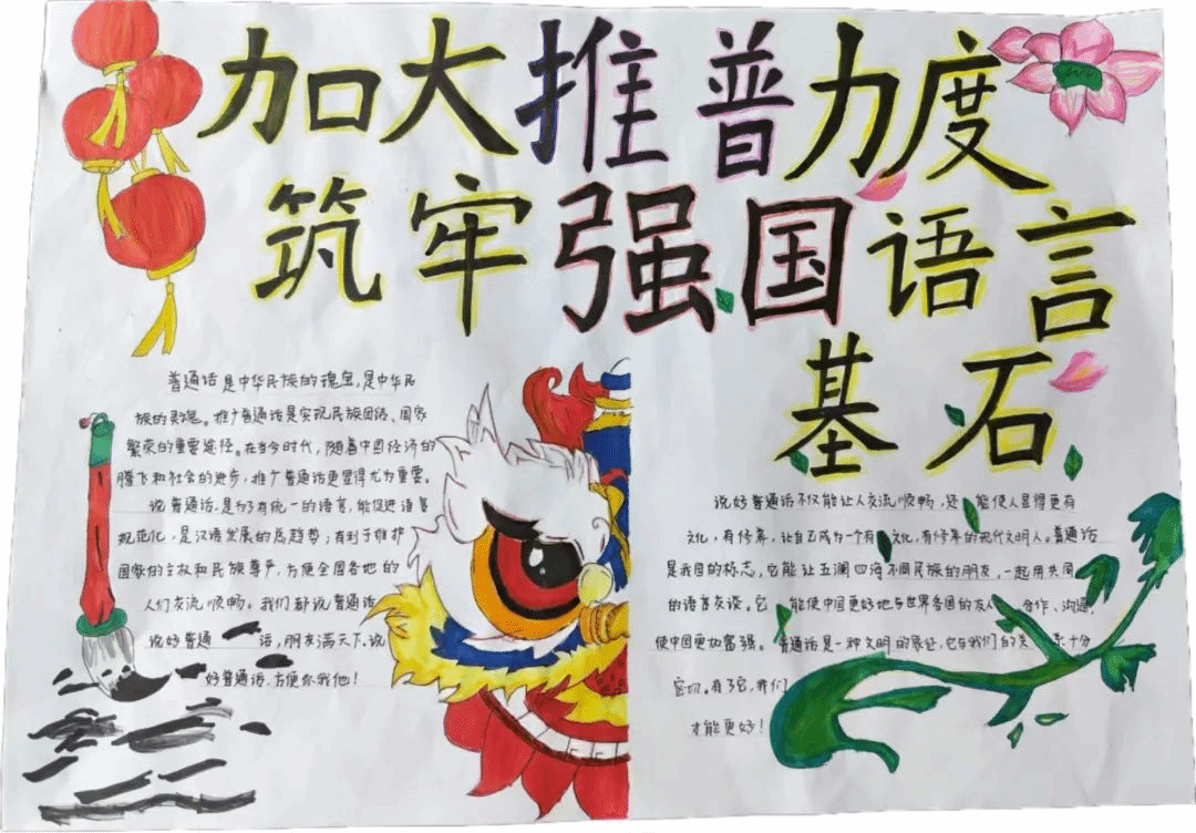为贯彻落实关于普通话宣传文件相关要求,我校决定以第27届全国推广普通话宣传周活动为契机,举办以“加大推普力度,筑牢强国语言基石”为主题的手抄报评比活动,引导学生注重普通话的正确使用和汉字的规范书写。在学院初赛上,评委们根据选手们的作品画面设计及作品内容等多方面进行综合评定,最终选出了获奖作品。接下来请大家跟随小理一起看一下获奖名单吧!