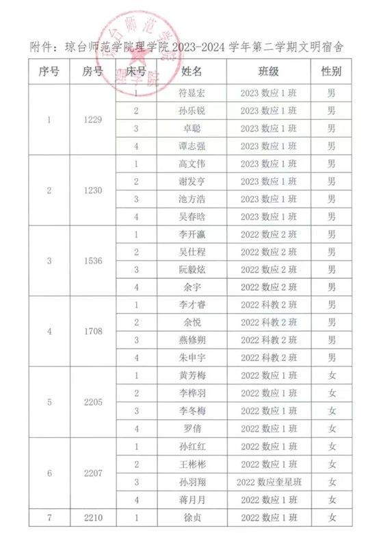 在检查中涌现了一批室内卫生干净整洁、生活秩序有条不紊的优秀文明宿舍。经过严格的评选,2023-2024年度第二学期文明宿舍获奖名单已经揭晓,恭喜以下宿舍获此殊荣。