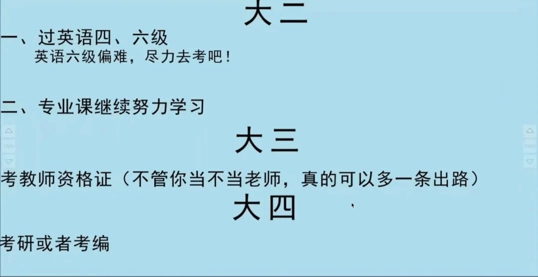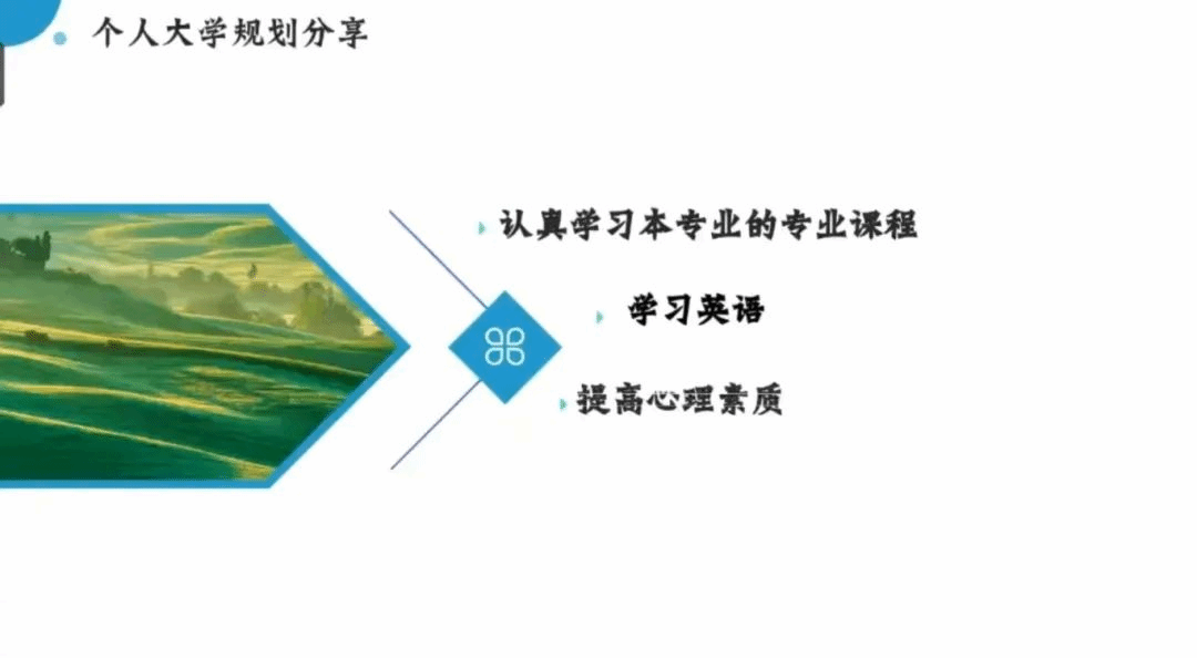 然后是曹玉玲学姐的分享。学姐的演讲条理清晰,简单明了,从大学规划的重要性、如何实践和自己的建议三个方面对职业生涯规划做出了详细的见解,并根据自己的经历对英语考级、考研和时间安排等关键问题提出建议,使同学们受益匪浅。