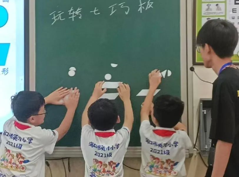 与此同时,七巧板教学活动正在实习过程中有序推进。英才小学的三个小分队分工清晰、配合默契,活动开展得十分顺利。其间,每个人都在活动中收获颇丰,且收获程度各有不同。