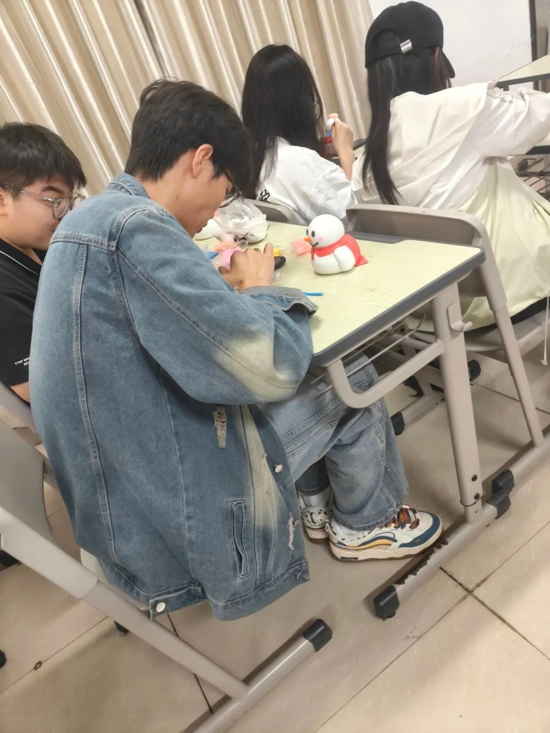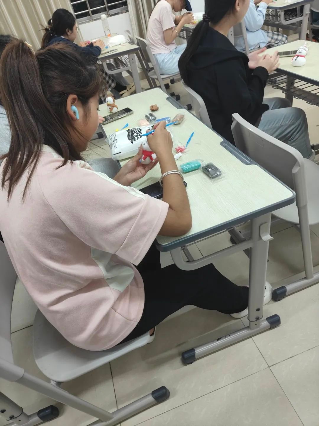 同学们利用超轻粘土捏雪人,捏雪人结束后大家拍摄雪人作品留念。在这场融合了传统习俗与现代创意的冬季盛宴中,体现了大家对冬日美好时光的珍惜。
