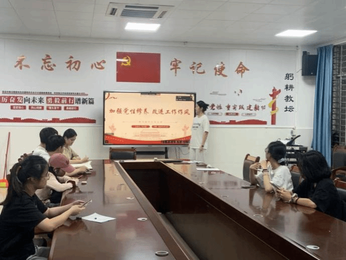 为了筑牢思想根基,强化党性意识;靶向纠治作风,破除顽瘴痼疾;树牢宗旨意识,增进服务效能;激发担当作为,推动事业发展;强化纪律规矩,涵养清风正气。理学院学生党支部于2025年4月12日在实B107会议室开展了“加强党性修养,改进工作作风”主题党日活动。