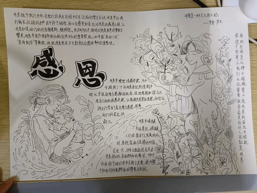 此次母亲节手抄报活动,不仅锻炼了学生的动手能力与艺术素养,更重要的是让同学们在创作过程中,深刻体会到母爱的伟大与无私,唤醒了大家对母亲的感恩之情,在校园内营造出了浓厚的感恩氛围。