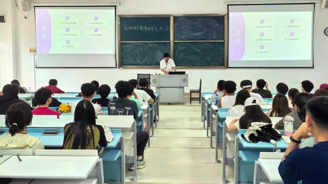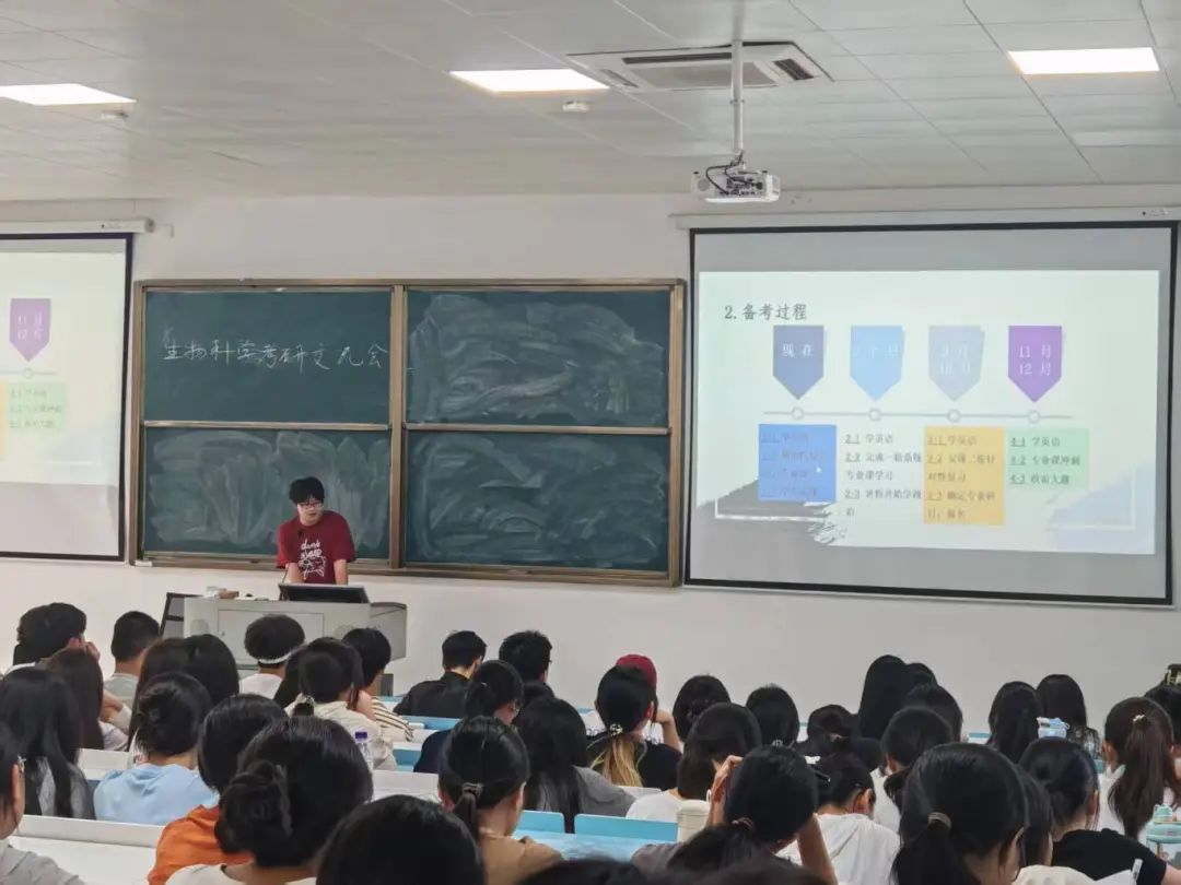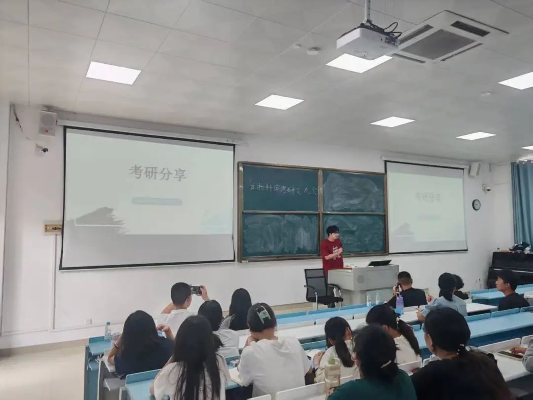 为了帮助生物科学专业的同学更好地理解考研与未来职业发展的关系,明确考研的长远意义,并规划自己的未来。2025年5月17日14:30—16:00,理学院生物科学专业在文c301举办了生物科学考研交流分享会。理学院副院长许环军老师、王星老师、郝慧华老师参加了本次交流会。