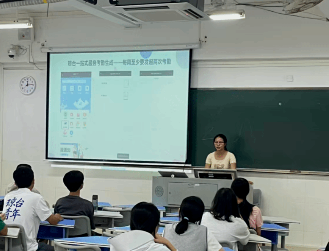 会议伊始,由理学院团委学生会综合管理部成员开展讲解,聚焦琼台一站式服务考勤生成等内容,为纪检委员清晰呈现考勤工作的数字化操作流程。