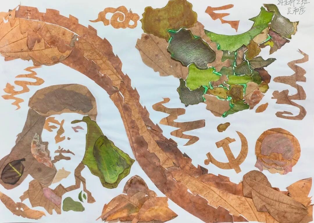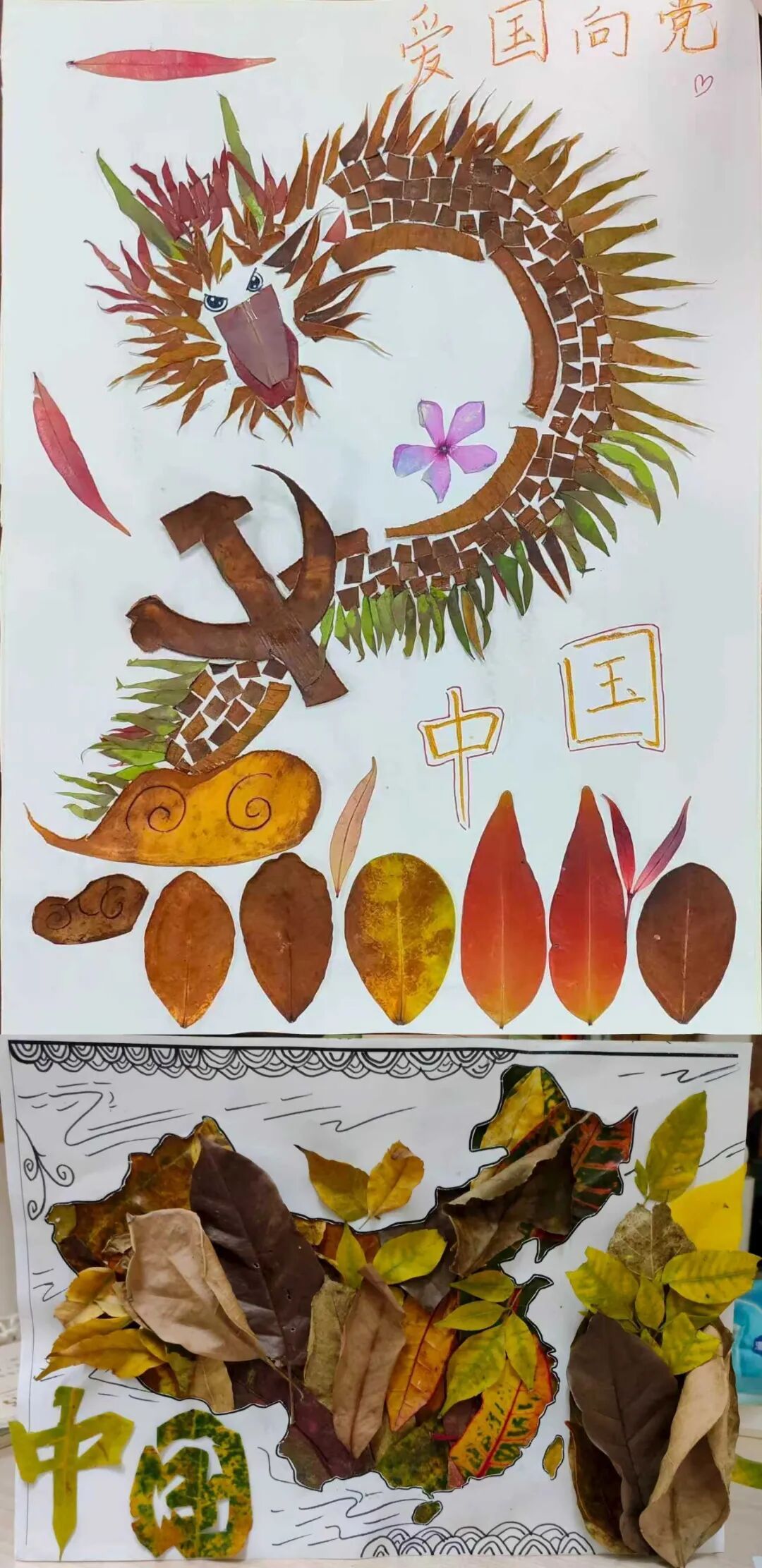 本次活动旨在积极响应新时代立德树人的根本要求,将爱国主义教育、生态文明理念与美育实践深度融合。通过创作以国旗、党徽、长城等国家象征为主题的树叶贴画,引导同学们在方寸叶脉间诠释家国情怀,践行“强国有我”的青春誓言,让爱国之心、文化自信与绿色理念内化于心、外化于行。