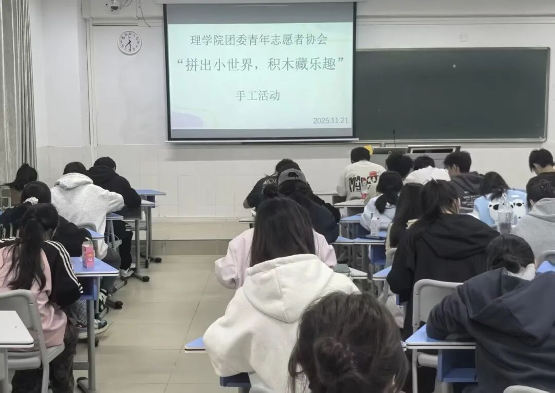 为了激发同学们创意潜能与动手能力,理学院团委青年志愿者协会于2025年11月21日19:30—21:10在躬耕楼206举办“拼出小世界,积木藏乐趣”手工活动。