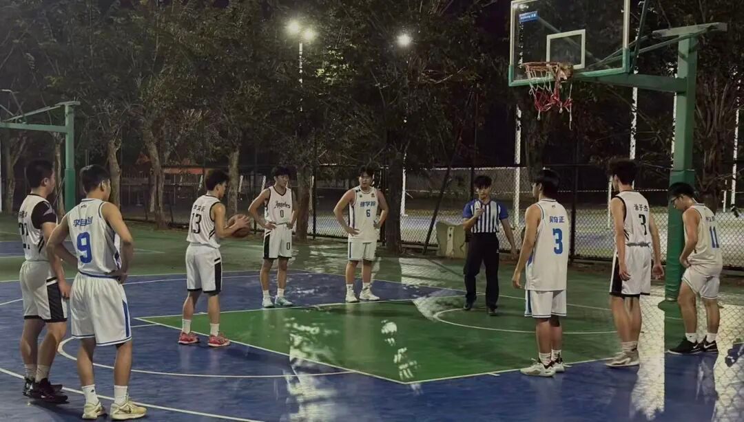 随着开场哨声响起,比赛正式打响。同学们迅速进入状态,奔跑、传球、上篮等动作利落有力;灵活过人、精准远投、奋力争抢等点燃全场热情;默契配合、坚韧防守、及时补位尽显团队凝聚力。汗水在阳光下闪耀,呐喊在球场间回荡,每一次得分都凝聚着拼搏意志,每一次击掌都传递着团结温度。