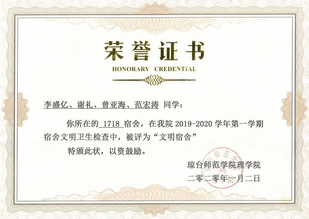 2019数学与应用数学2班在他和其他班团委干部的带领下、在全体班级同学的配合下,始终保持着优良的班风和学风,班级连续三年被评为先进班集体、年度“五四红旗团支部”。