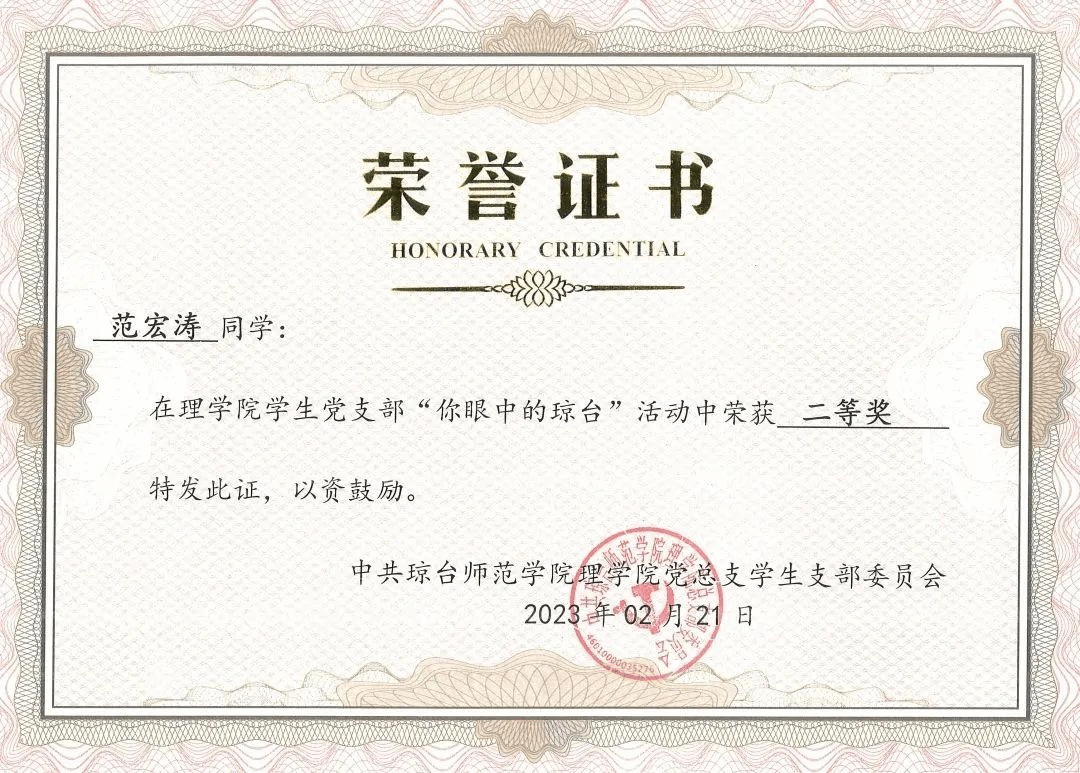 2023年理学院学生党支部“你眼中的琼台”活动二等奖
